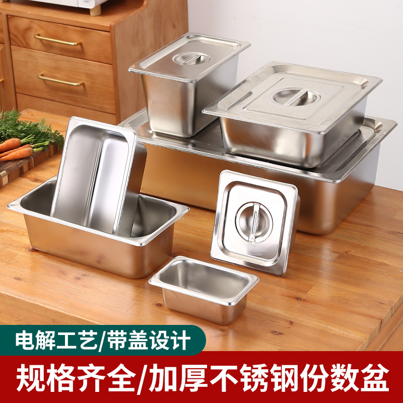 商用304不锈钢带盖份数盆备料盘小料盆分餐盆食堂厨房备菜储物盆