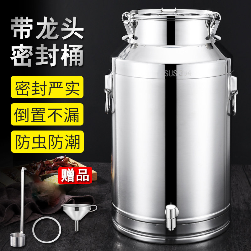 304不锈钢储酒桶油桶带锁扣密封储物桶茶叶桶面粉米桶储物罐运输