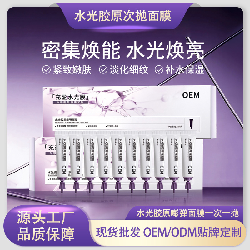 韩水光胶原面膜涂抹焕亮紧致抗皱淡纹胶原蛋白人皮撕拉睡眠面膜束