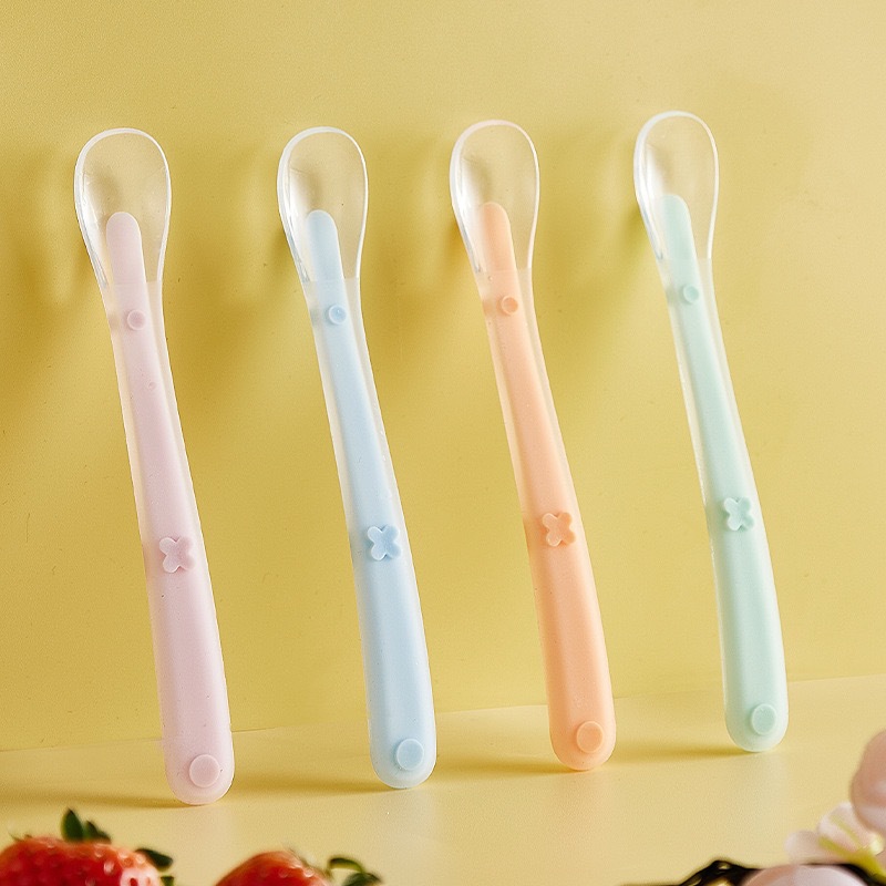 儿童纳米色硅胶软头汤勺子宝宝喂水喂奶辅食餐具训练勺厂家直销