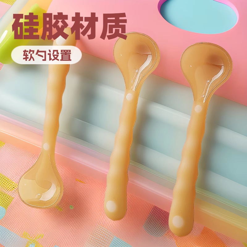 宝宝硅胶软勺子餐具 新生儿喂水儿童辅食喂奶喂辅食勺子厂家直销