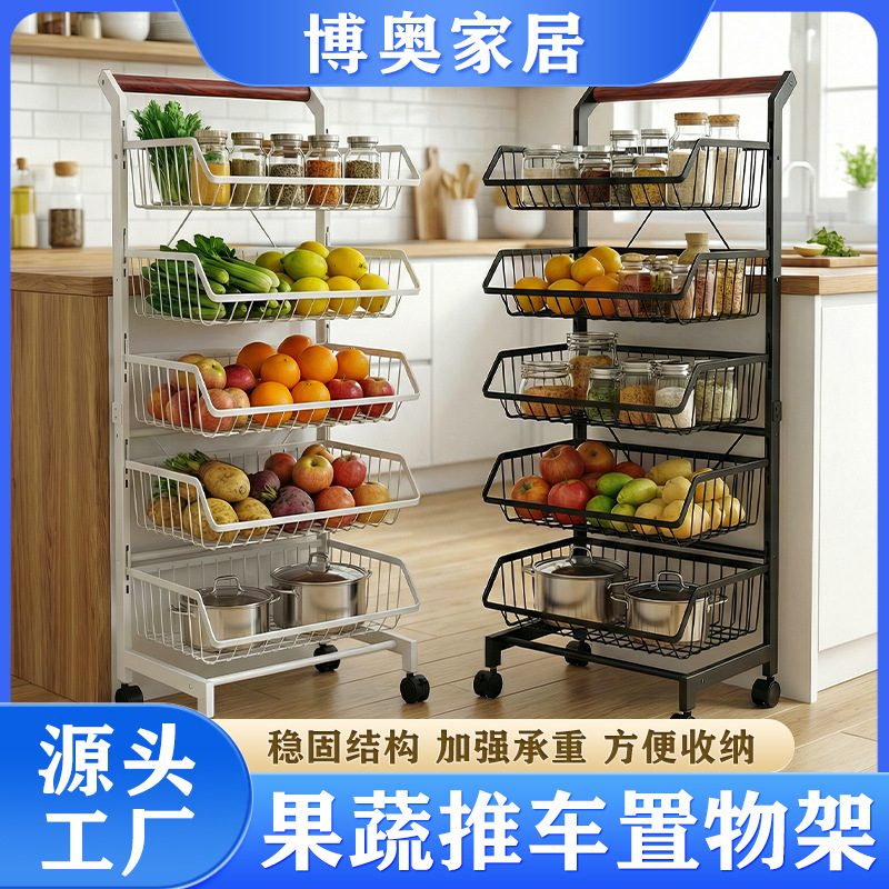 新款厨房置物架小推车可移动蔬菜水果收纳架零食储物架多层落地