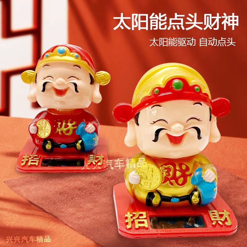 光能感应自动点头财神爷新春喜庆摆件收银台盆栽装饰中控台车载