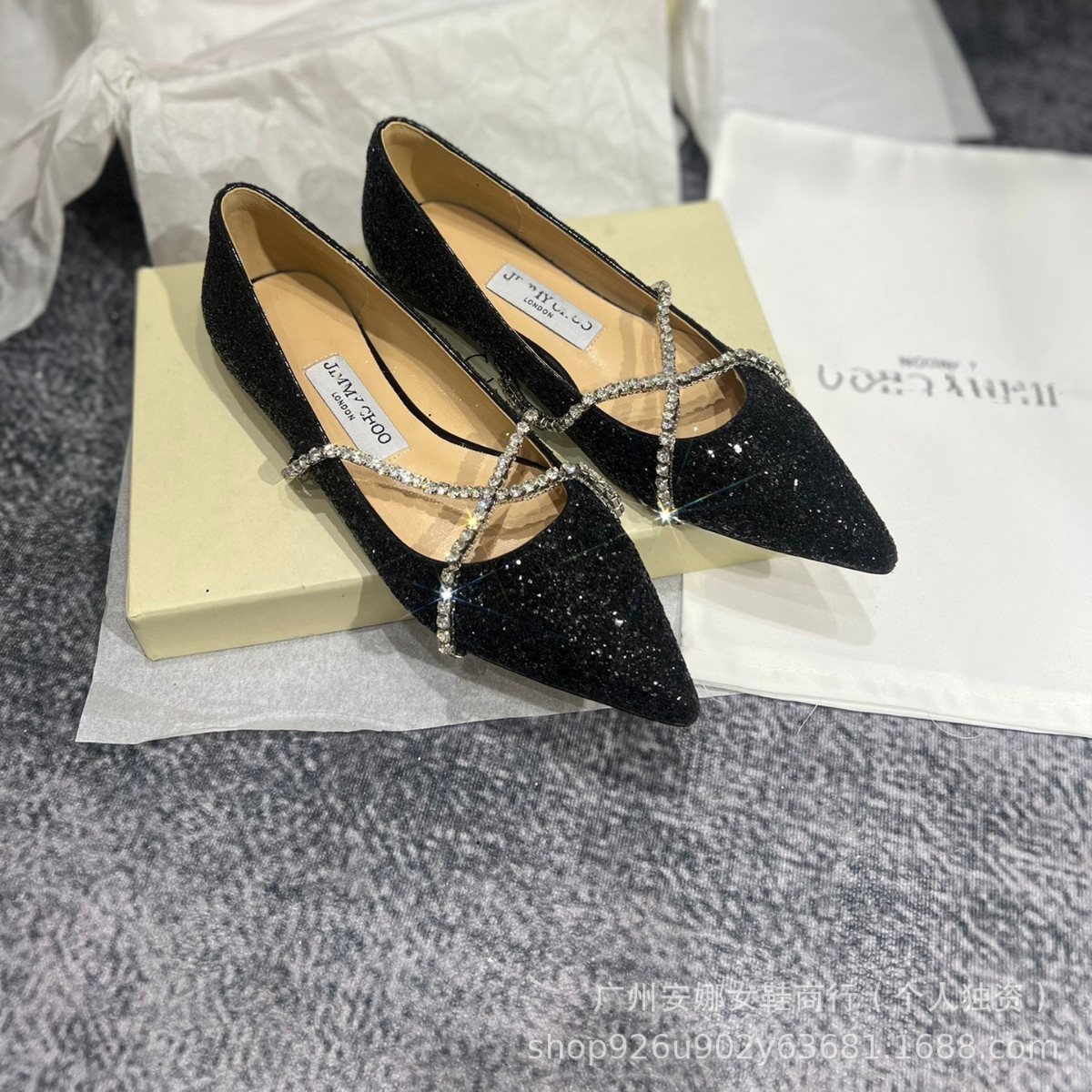 jc尖头交叉水晶钻链平底鞋幻彩人鱼姬时髦百搭浅口单鞋芭蕾舞鞋女