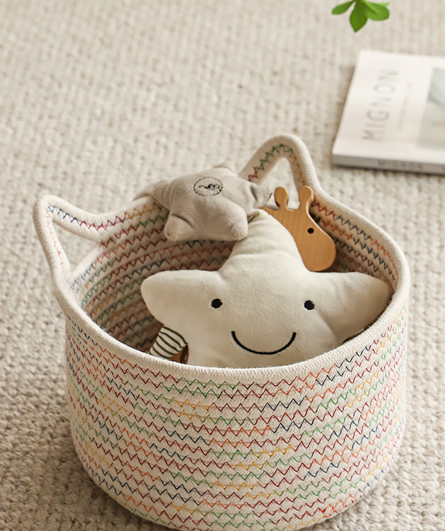 化妆品桌面收纳盒手工编织棉线收纳篮子化妆刷口红零食杂物收纳筐