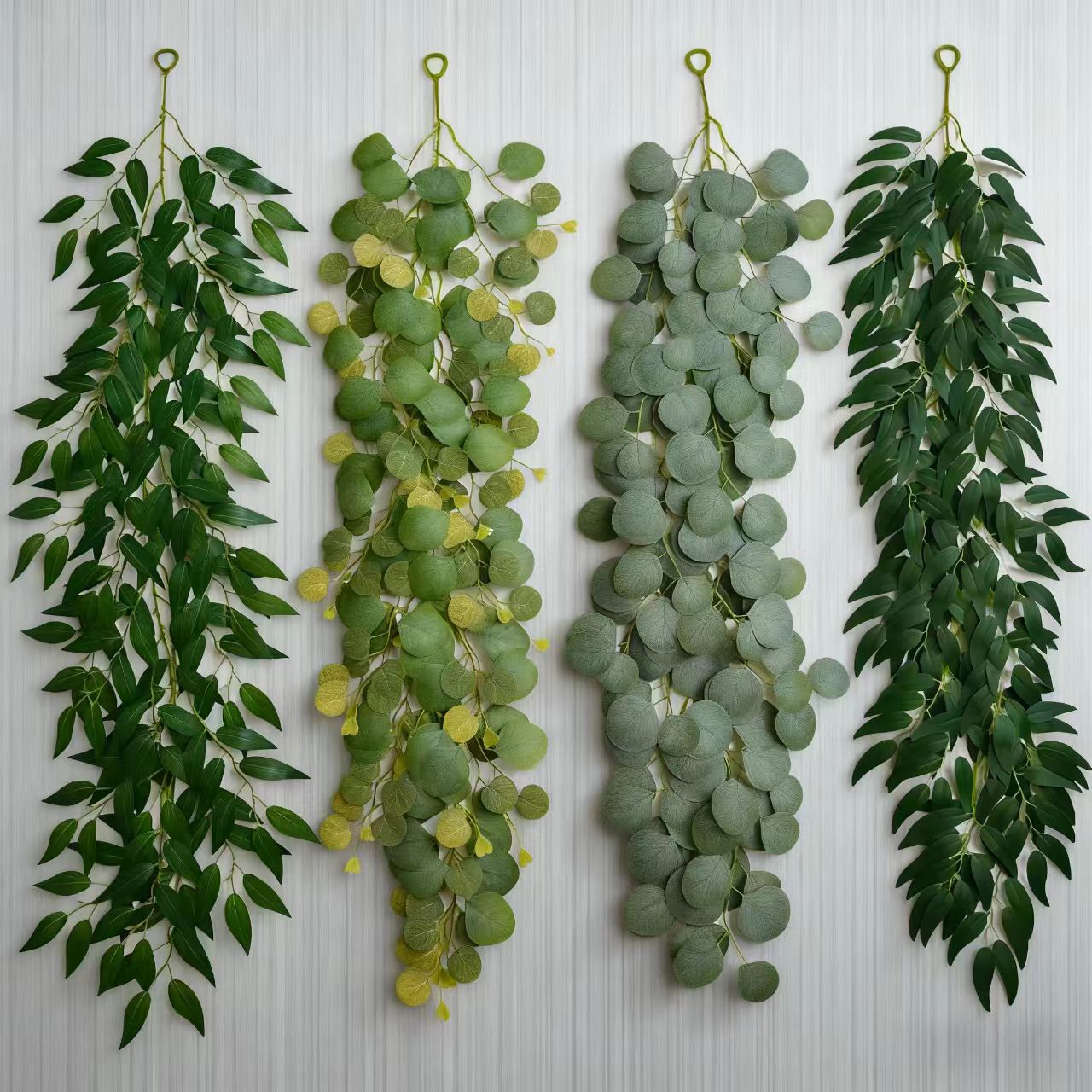 亚马逊婚礼装饰常青藤圆叶尤加利藤蔓人造绿叶桉树尤加利柳叶藤条