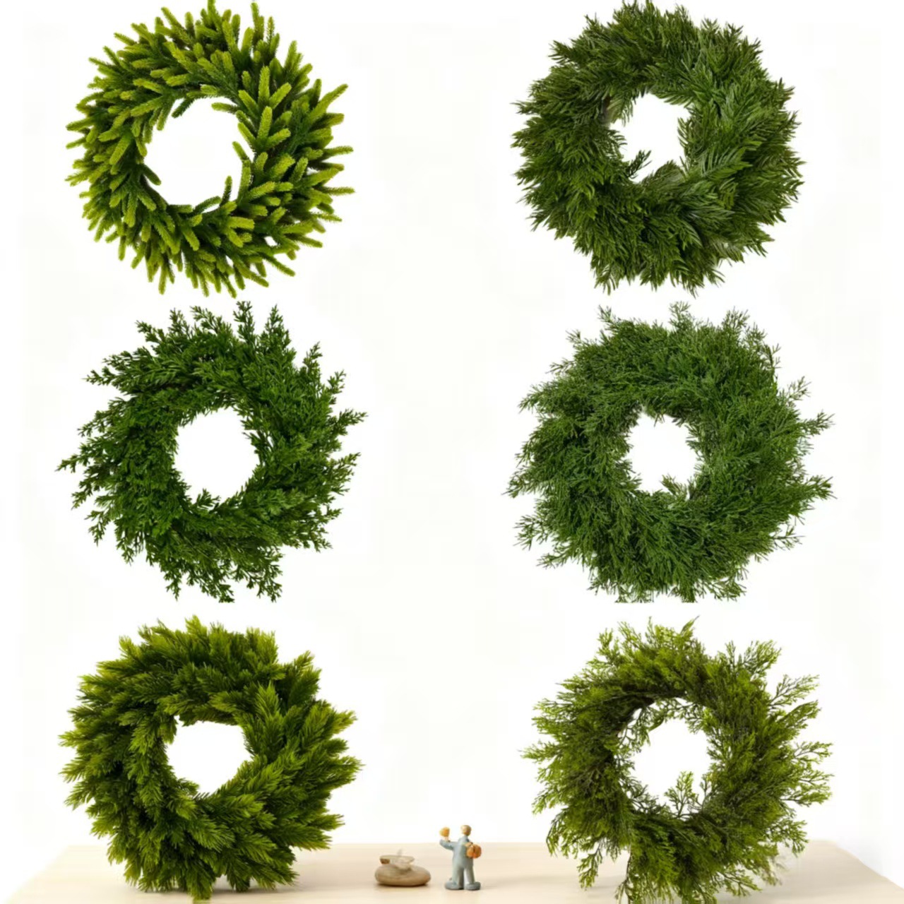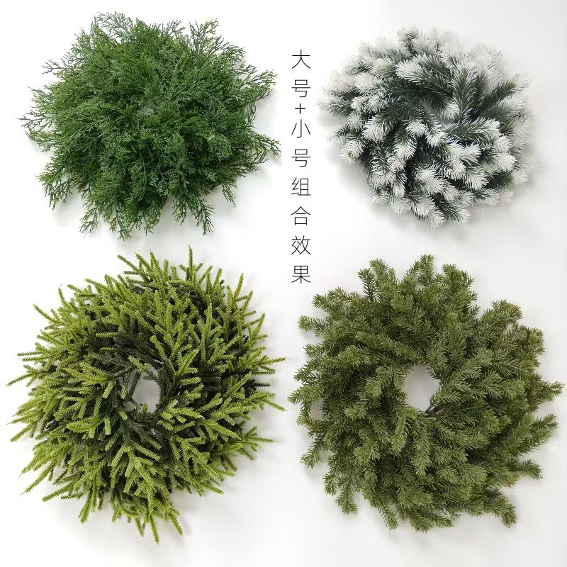 亚马逊仿真绿植松针松柏花环门窗挂件圣诞节藤绿色环圆环门挂装饰