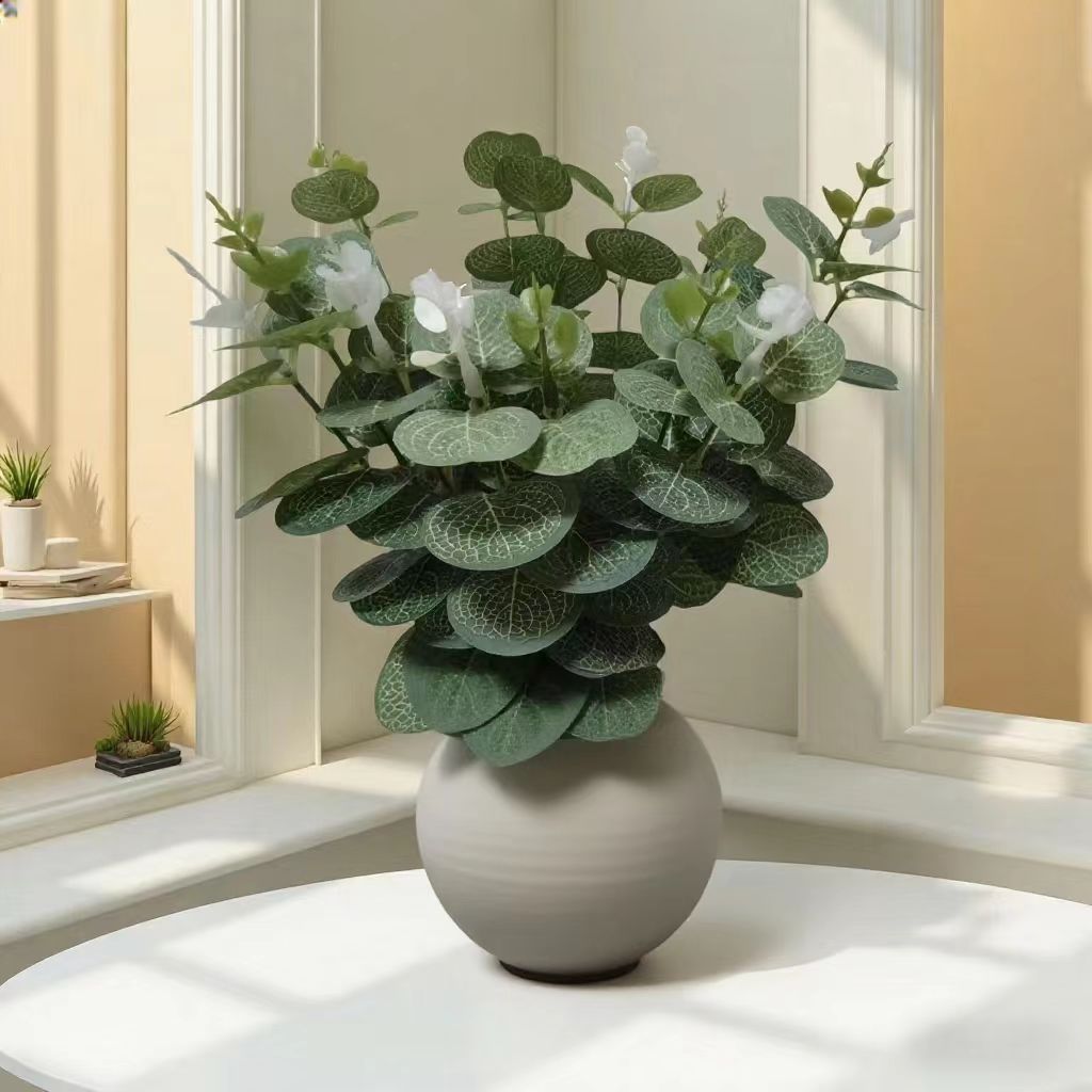 仿真单支金钱叶尤加利 ins风立体尤加利仿真花绿植插花装饰品摆件