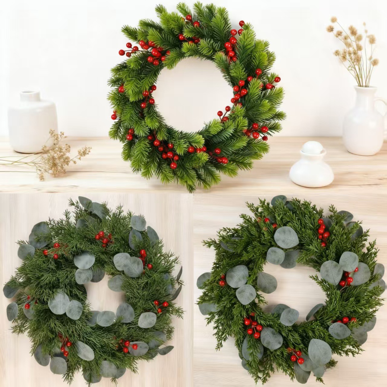 跨境亚马逊批发圣诞人造节节松红果花环藤圈仿真绿植橱窗家居装饰
