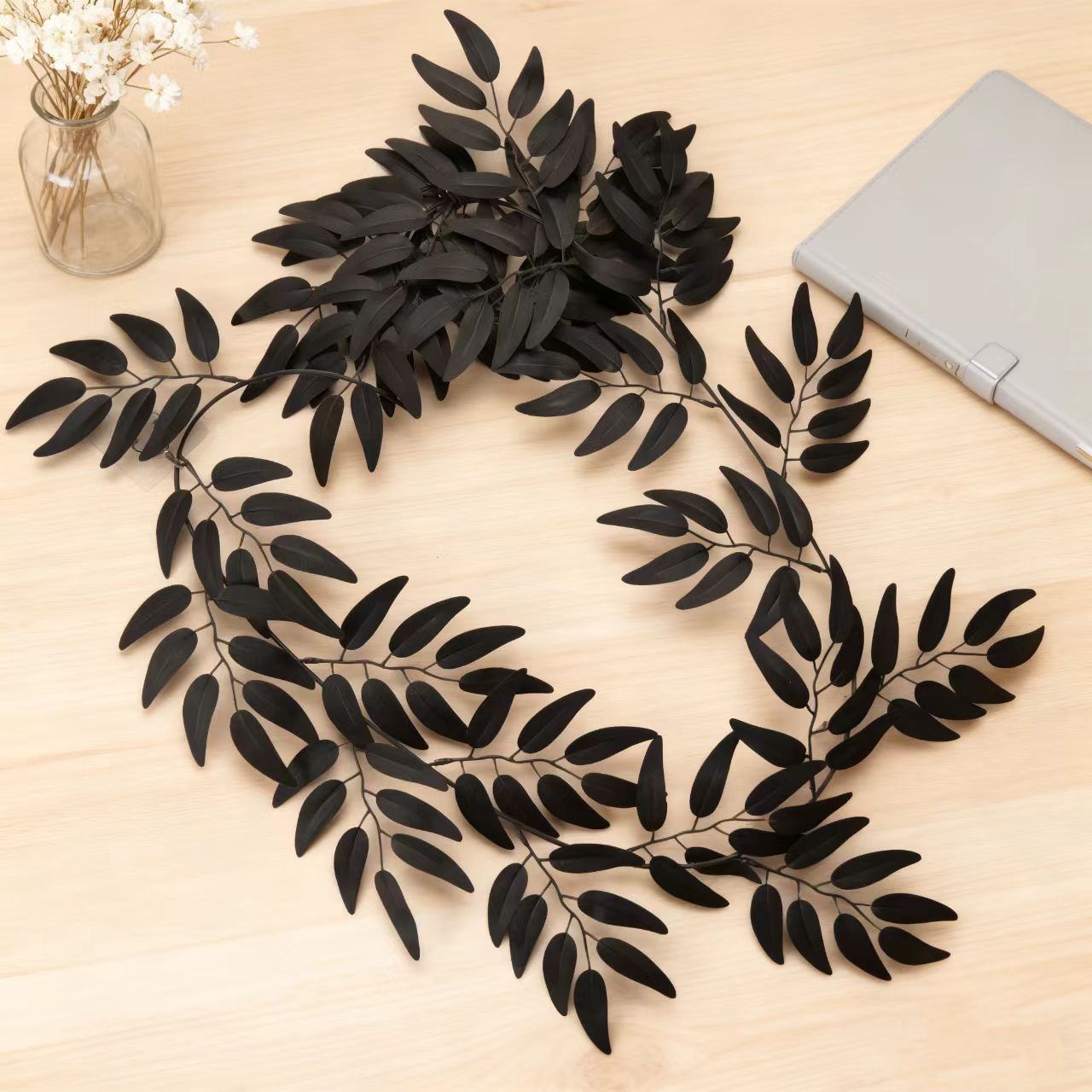 跨境1.95米黑色仿真柳叶藤条室内婚庆背景装饰植物缠绕藤蔓布置
