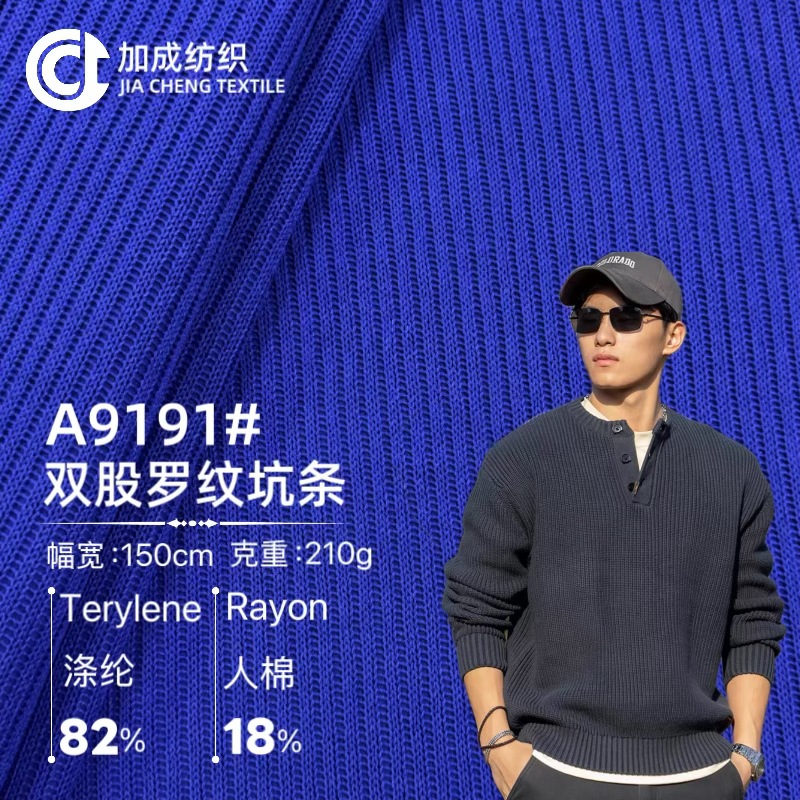 260g高弹罗纹2x1缎彩坑条面料秋款连衣裙套装针织布