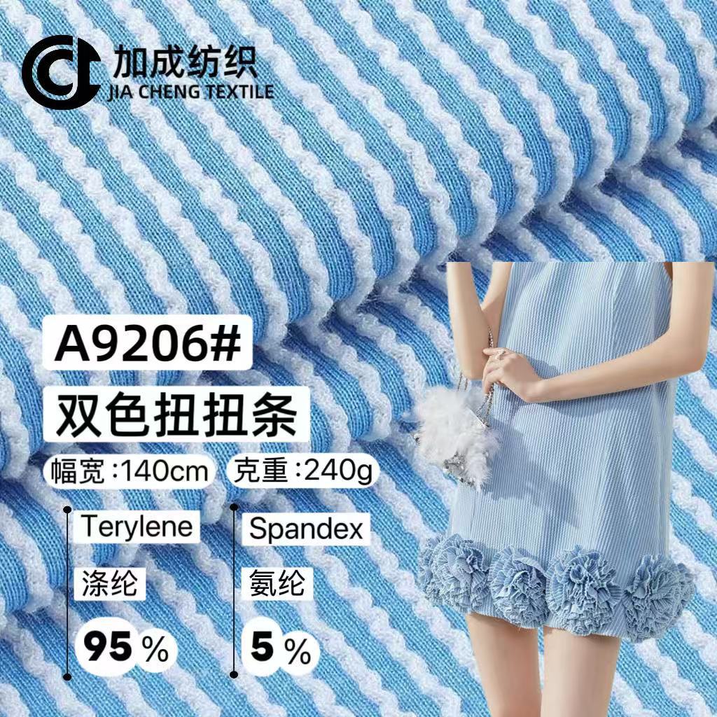 240G双色蛇骨扭扭条面料 涤纶弹力波浪春夏肌理感连衣裙套装