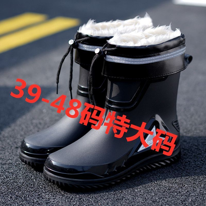 39-48码雨靴束口防水口雨鞋男款收口水靴厨房防滑工作加绒棉保暖