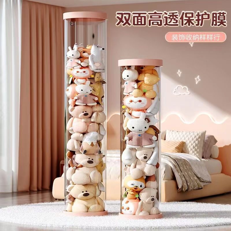 娃娃收纳桶毛绒玩具收纳神器透明筒儿童装玩偶大容量放公仔展示箱