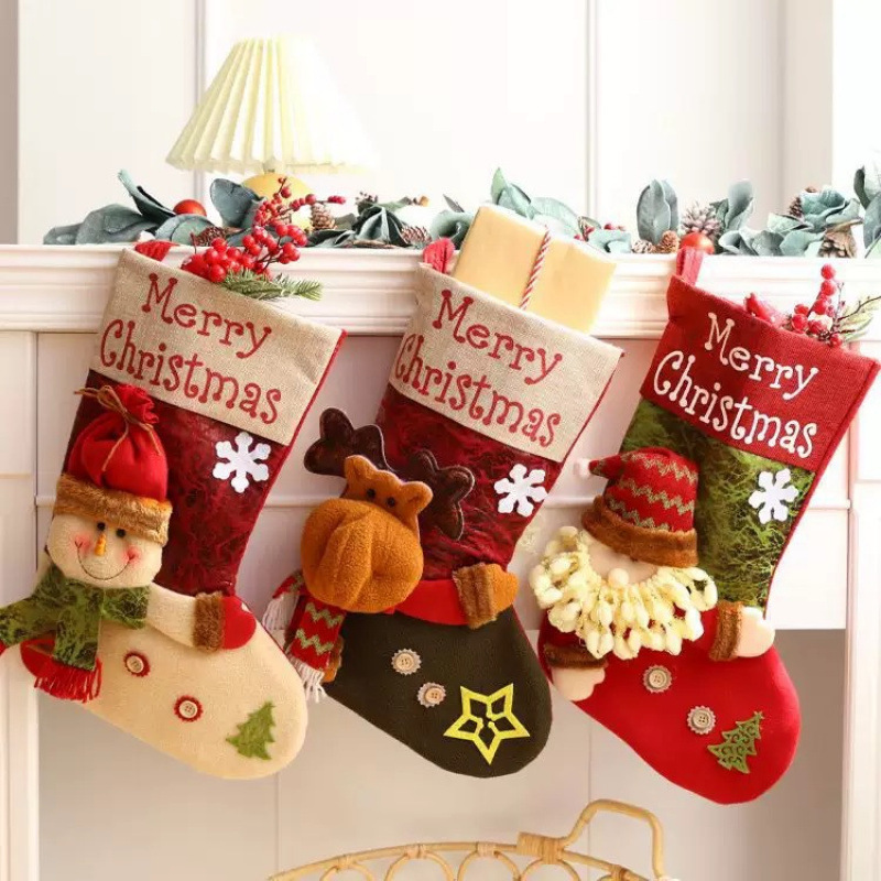 圣诞节袜子袋大号儿童糖果袋幼儿园圣诞老人雪人装饰布置用品包邮