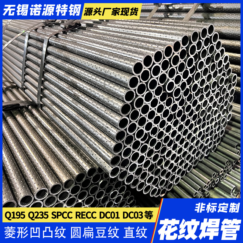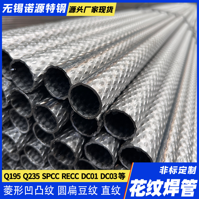 无锡花纹焊管厂家现货 Q235B SPCC双面菱形压花扁豆形凹凸圆焊管