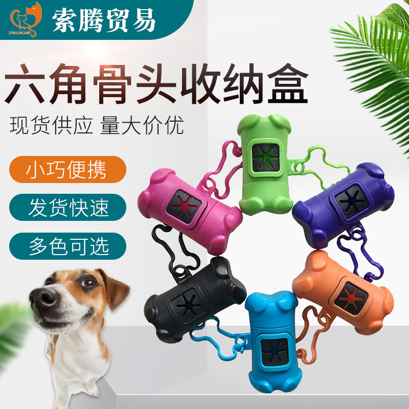 定制骨头型收纳盒宠物垃圾袋分配器六角骨头收纳盒宠物拾便袋套装