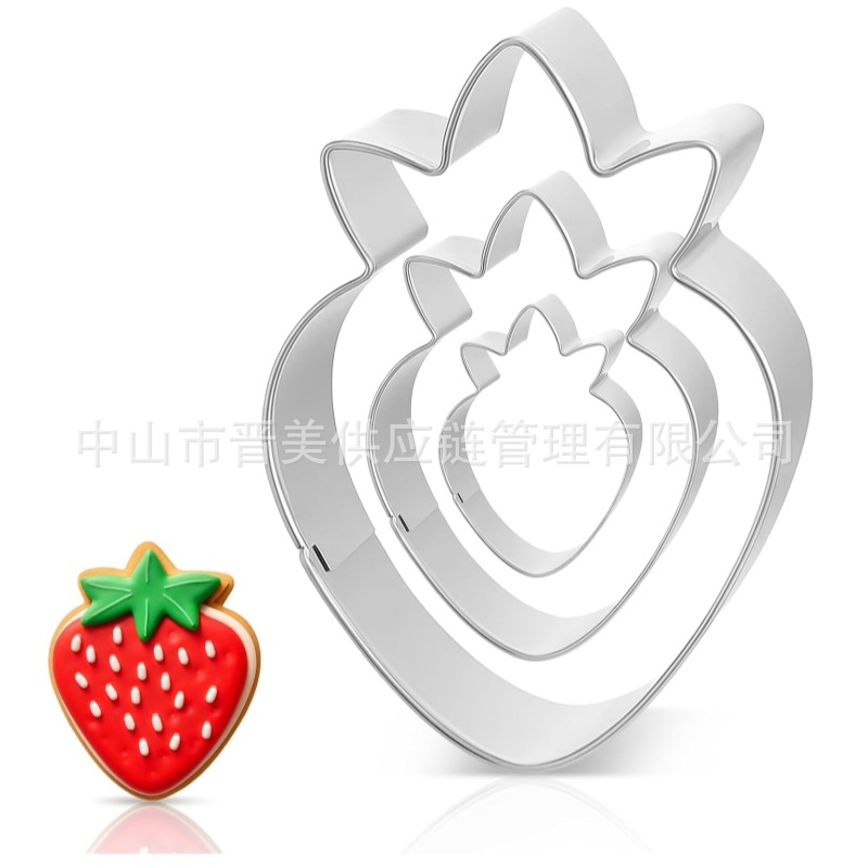 3件套装草莓不锈钢饼干模具水果柠檬桃子苹果按压式烘焙工具跨境