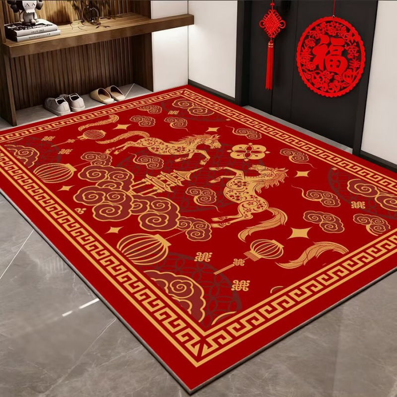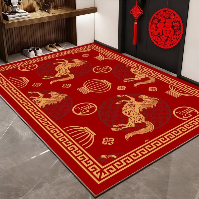 跨境马年新年红色地垫喜庆入户玄关耐磨耐脏大门口进门防滑脚踩垫