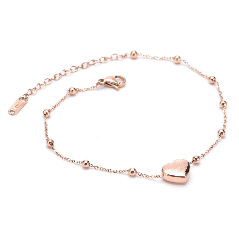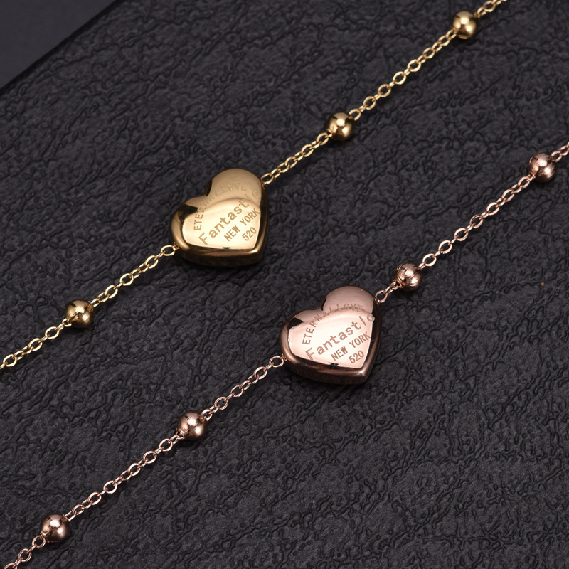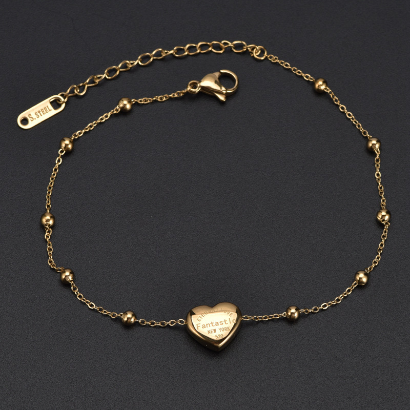 夏季18K金色钛钢脚链女首饰 现货简约珠子链爱心桃心脚链