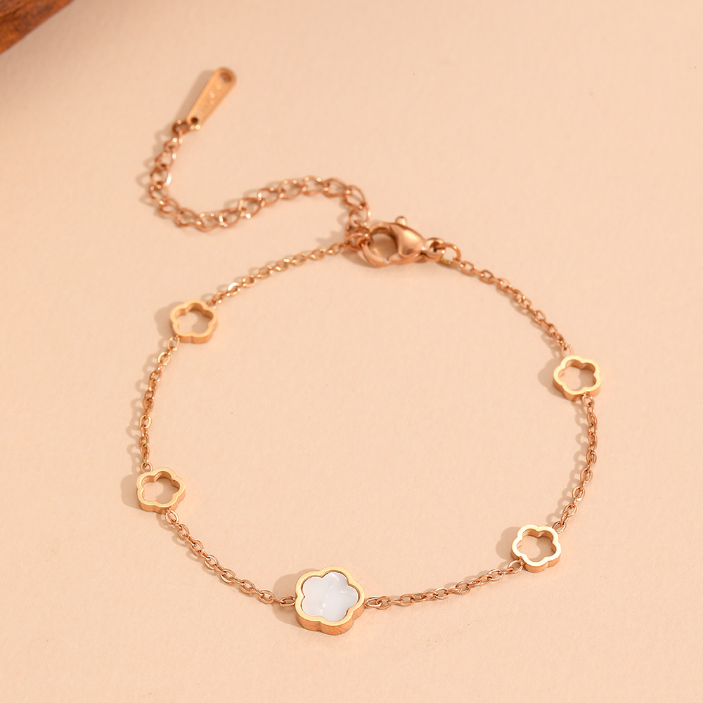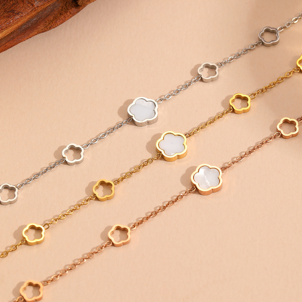 欧美跨境不锈钢小花镂空手链 时尚钛钢不掉色四个镂空五叶花手饰