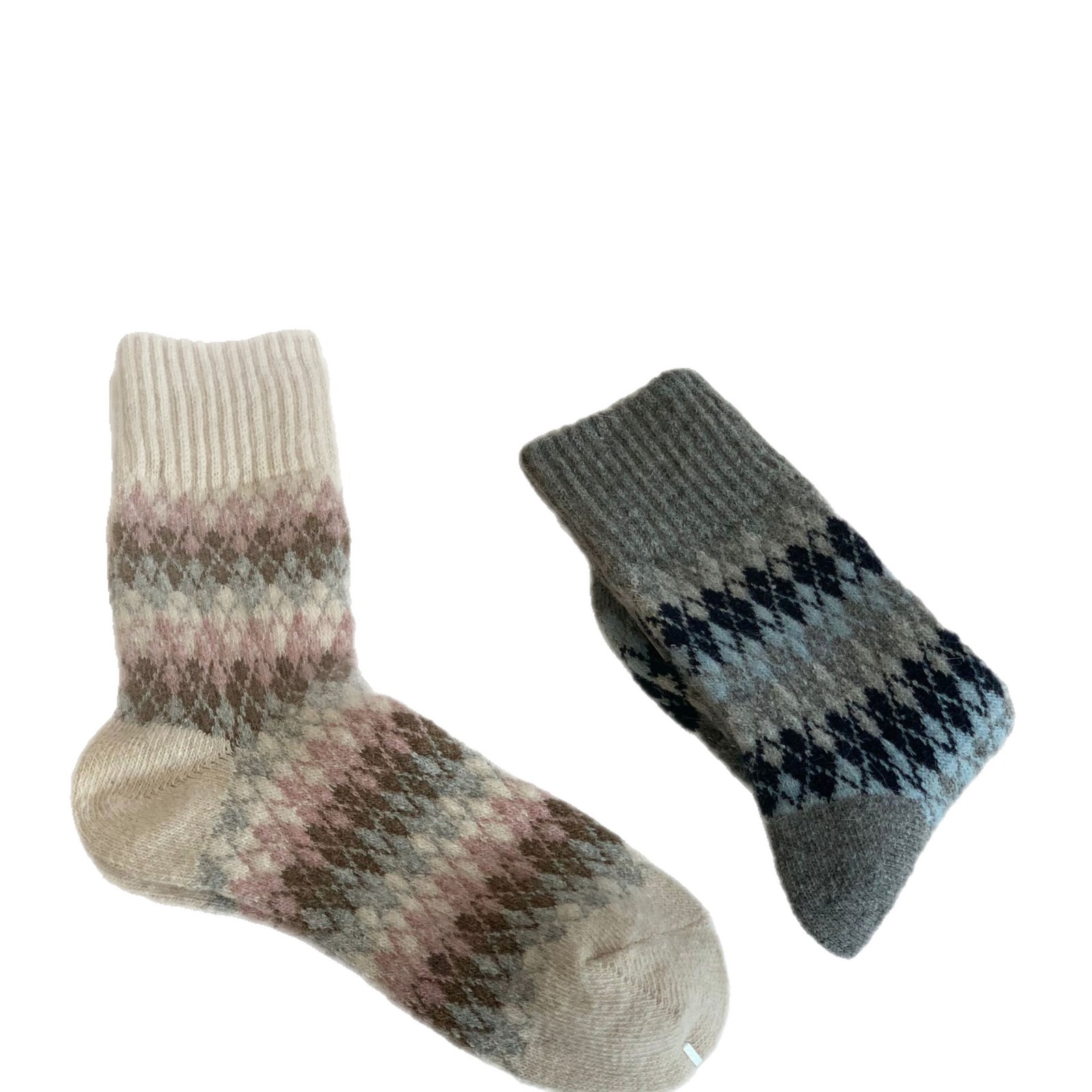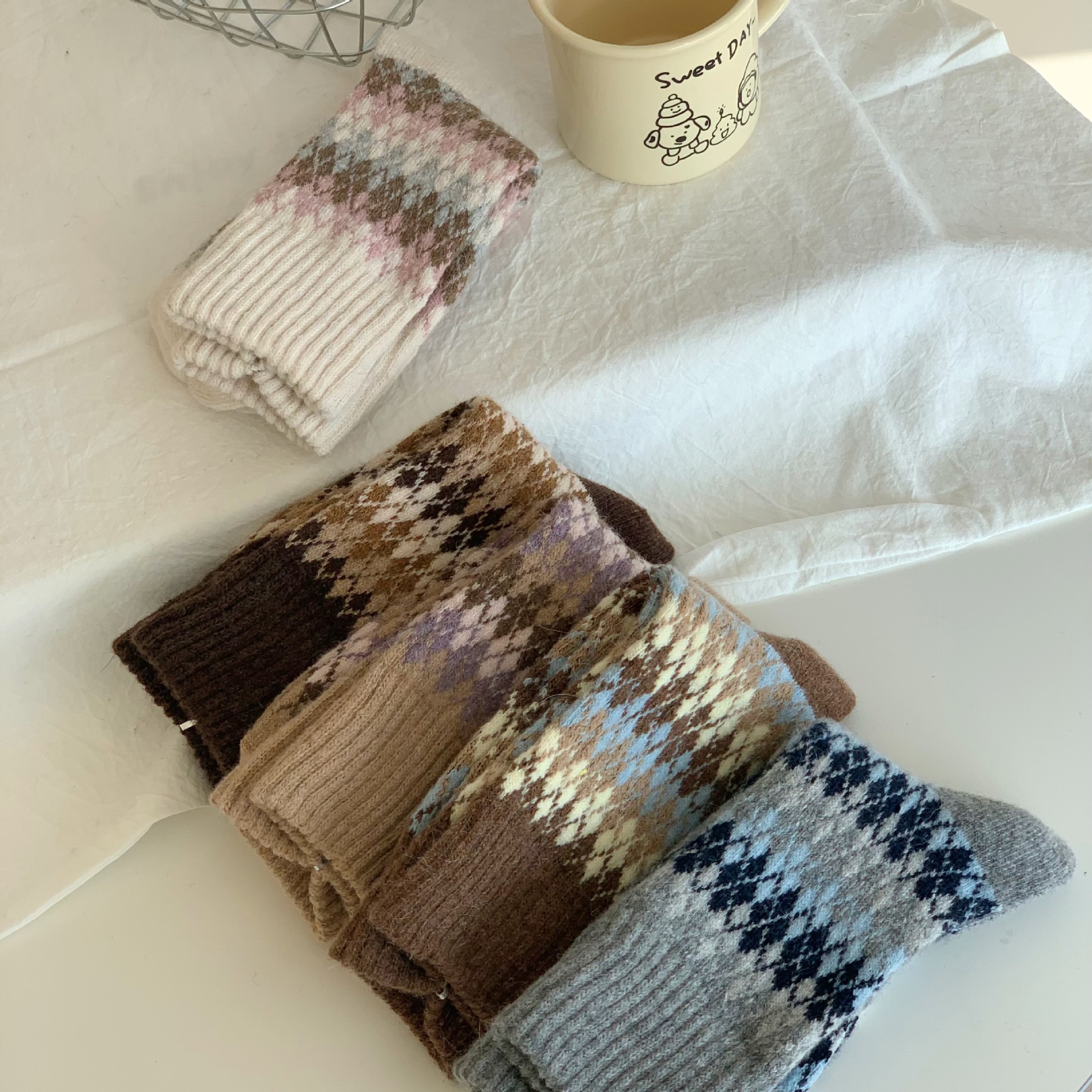 小红书新款费尔岛秋冬加厚保暖羊毛袜子女堆堆冬日菱格北欧风袜子