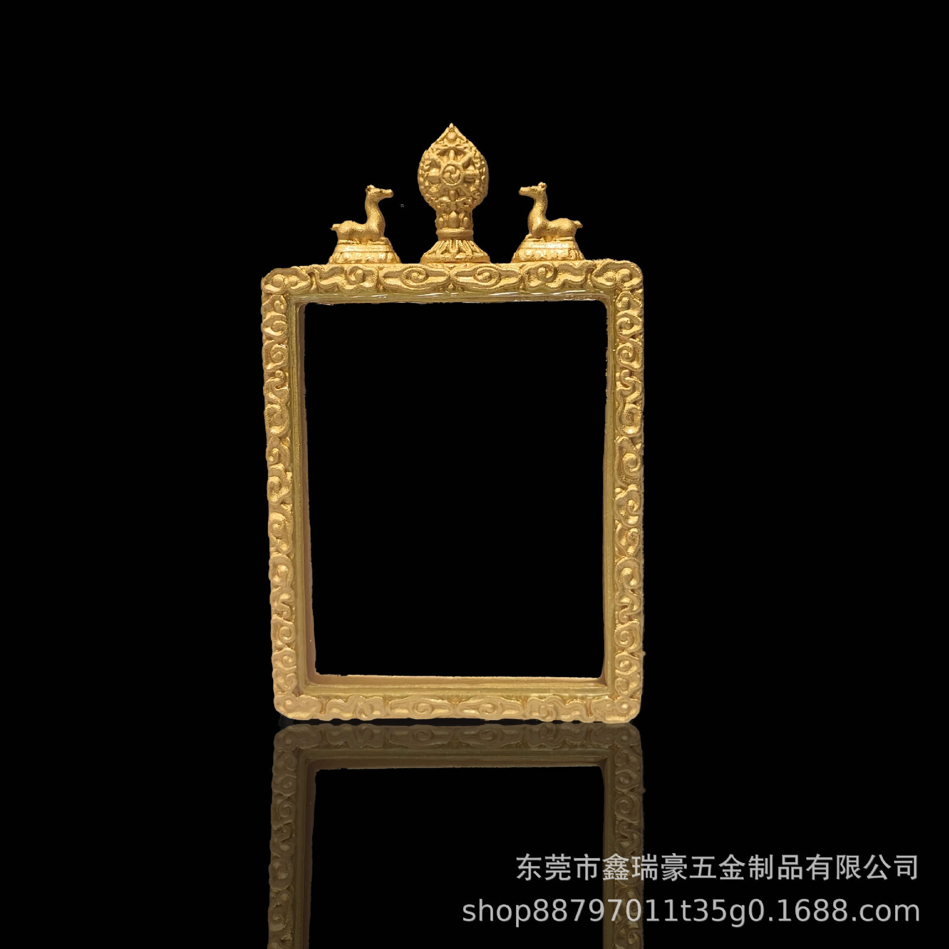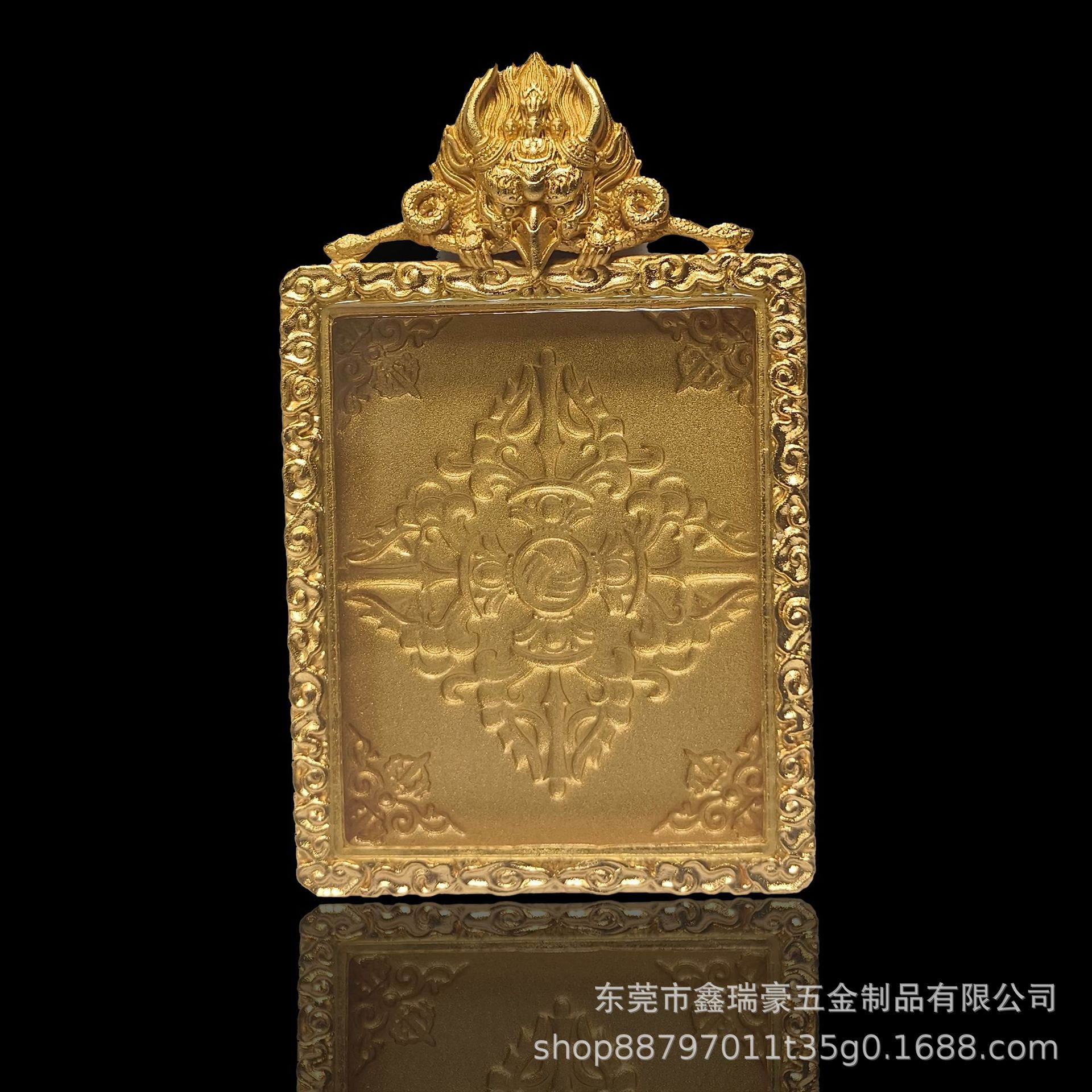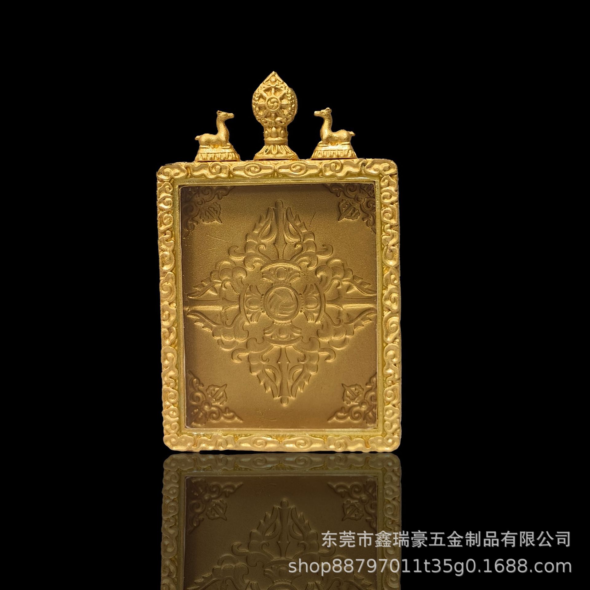 藏式4*5大鹏鸟双鹿听经纯铜唐卡嘎乌盒真空镀18k金直播间热卖款