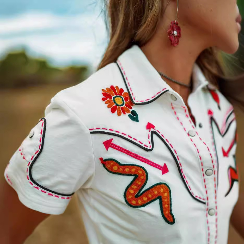 欧美2023独立站西部风女式上衣休闲衬衫T恤3d数码印花