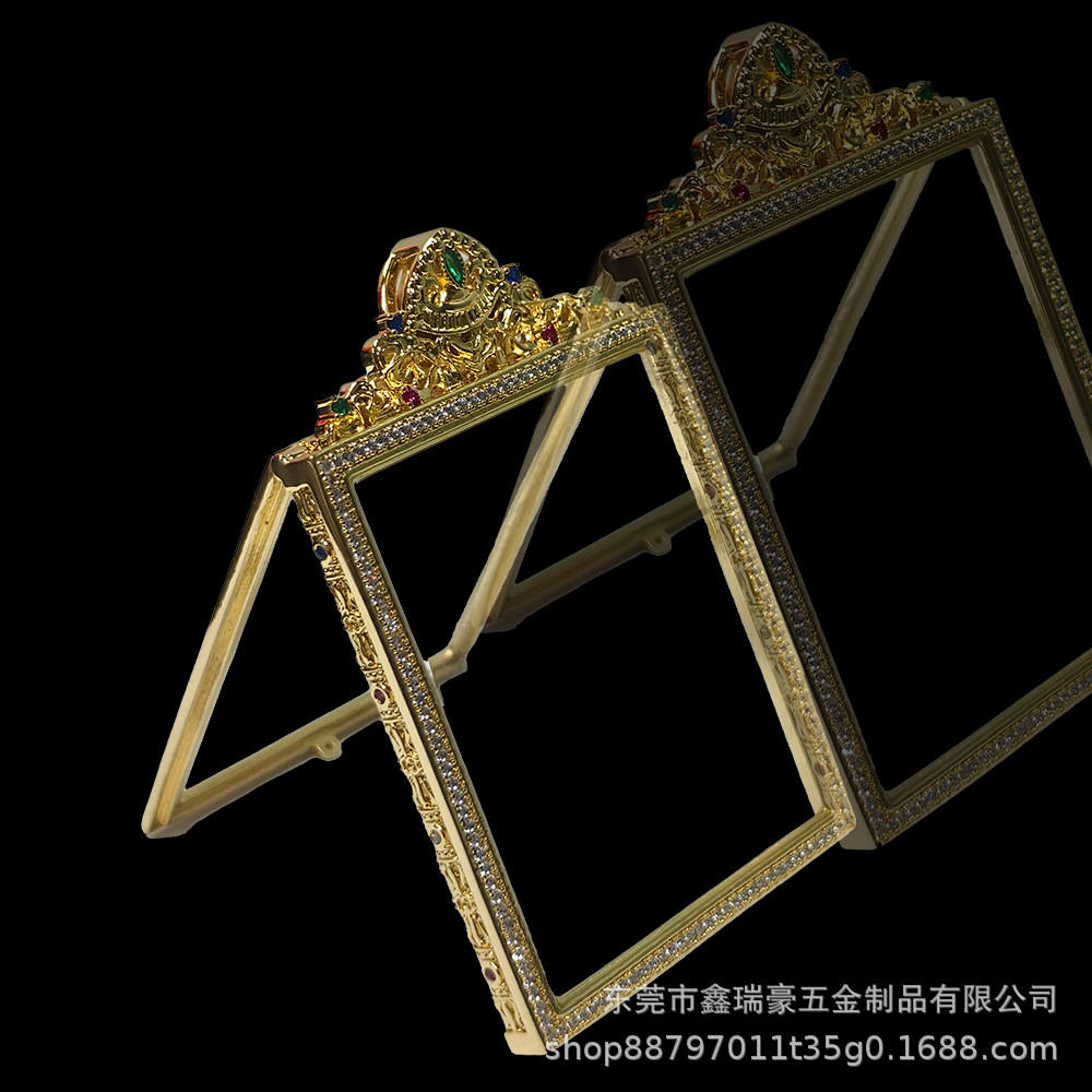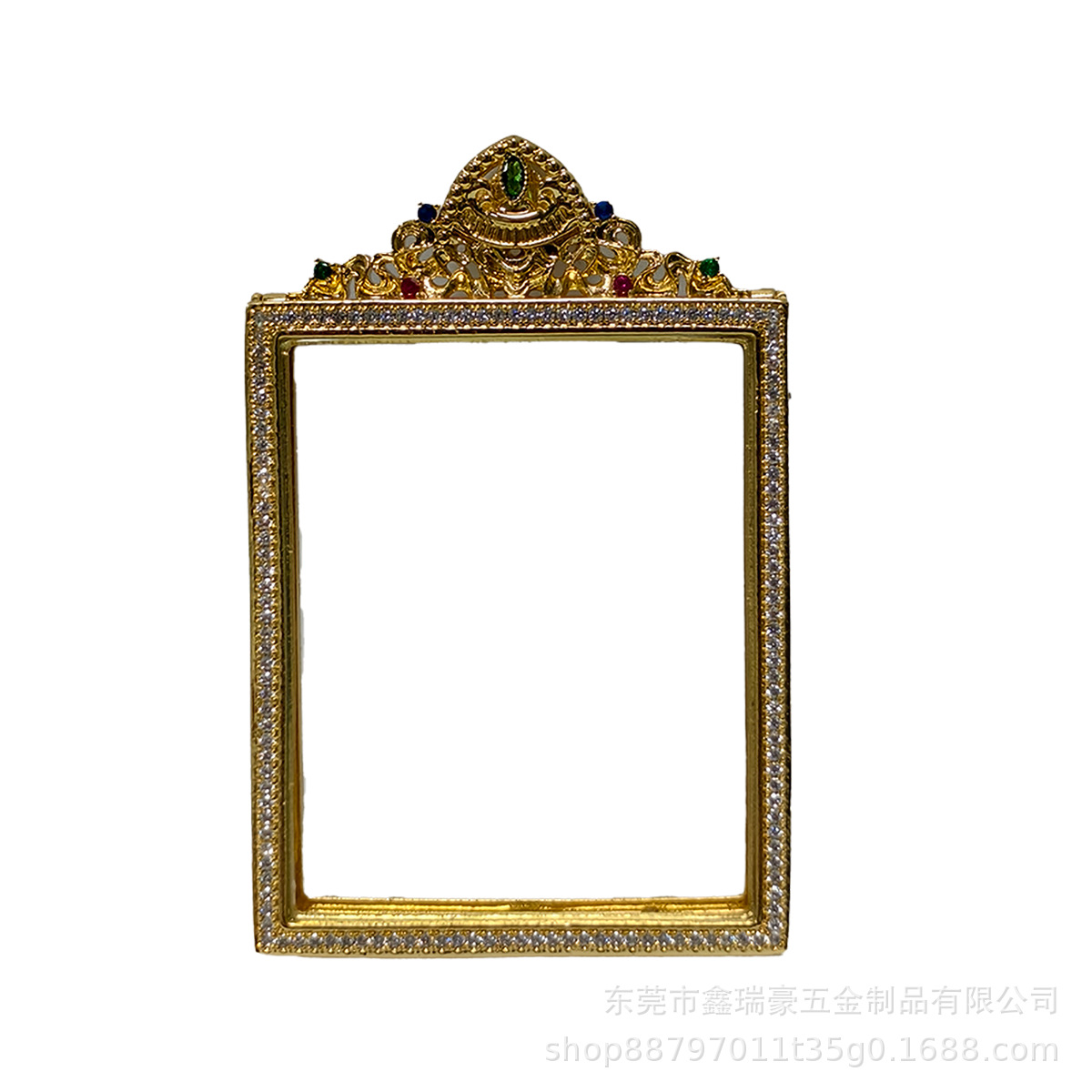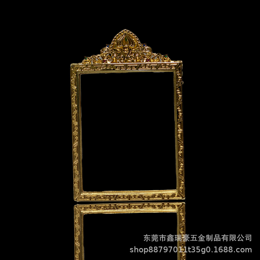 新款藏族直角镶钻4*5双面纯铜唐卡盒吊坠嘎乌盒金色不掉色防水