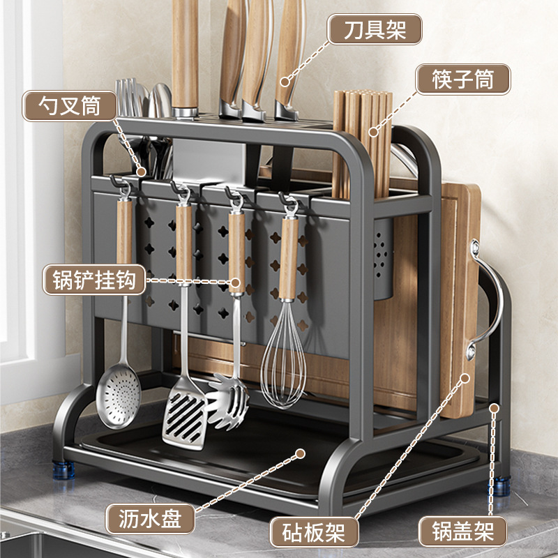 层数(规格)枪灰色加高款【双筷筒+接水盘+双砧板架】