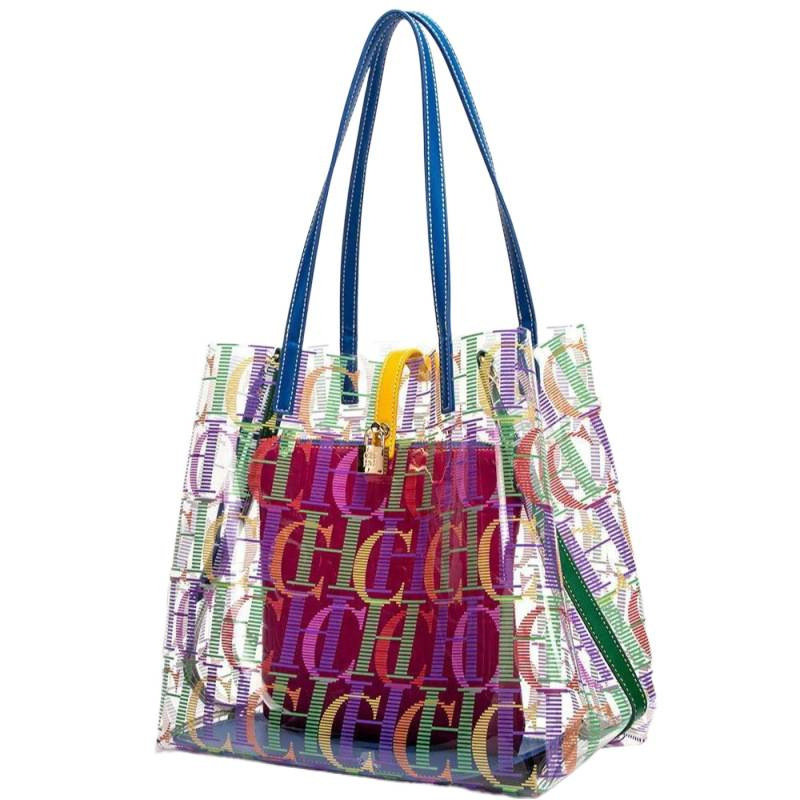 CHHC马卡龙色大容量手提包透明PVC字母印刷购物袋子母包托特包
