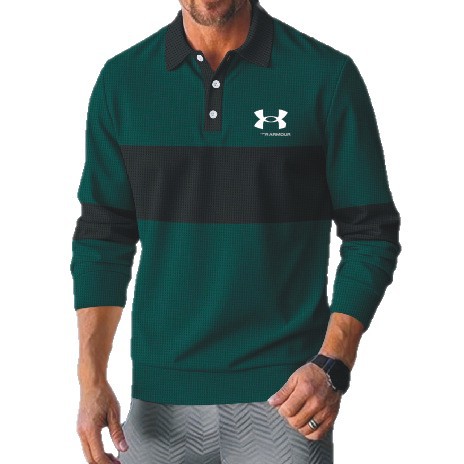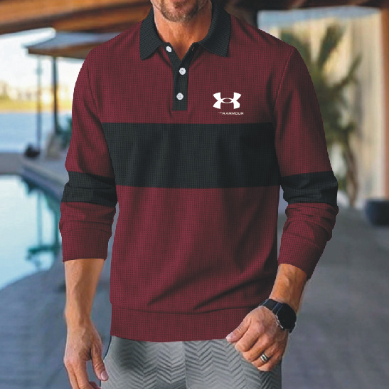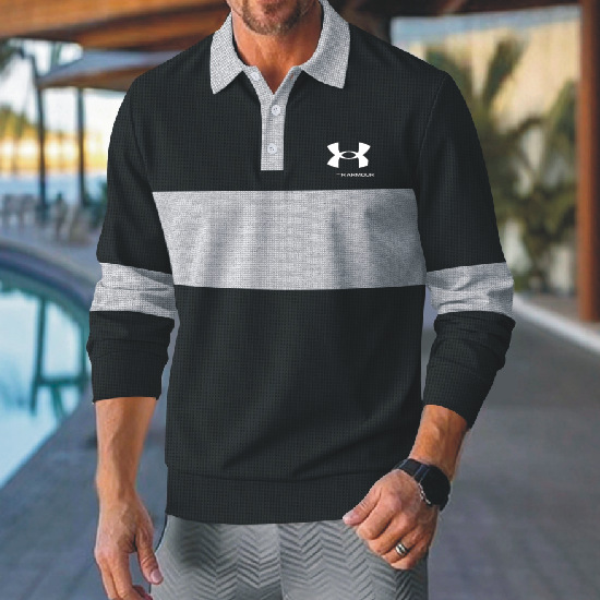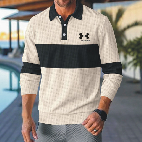 亚马逊跨境25秋季男士新款华夫格翻领扣子拼色休闲POLO衫长袖