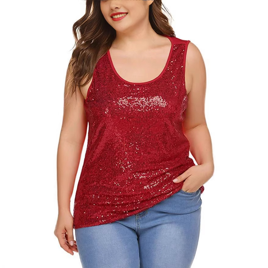 欧美女装2020ebay亚马逊wish女士闪耀亮片装饰闪耀背心T恤印花