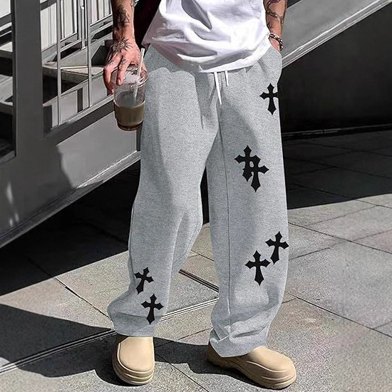 春秋新款 Y2K暗黑哥特字母印花宽松高腰显瘦男女女系带运动裤卫裤