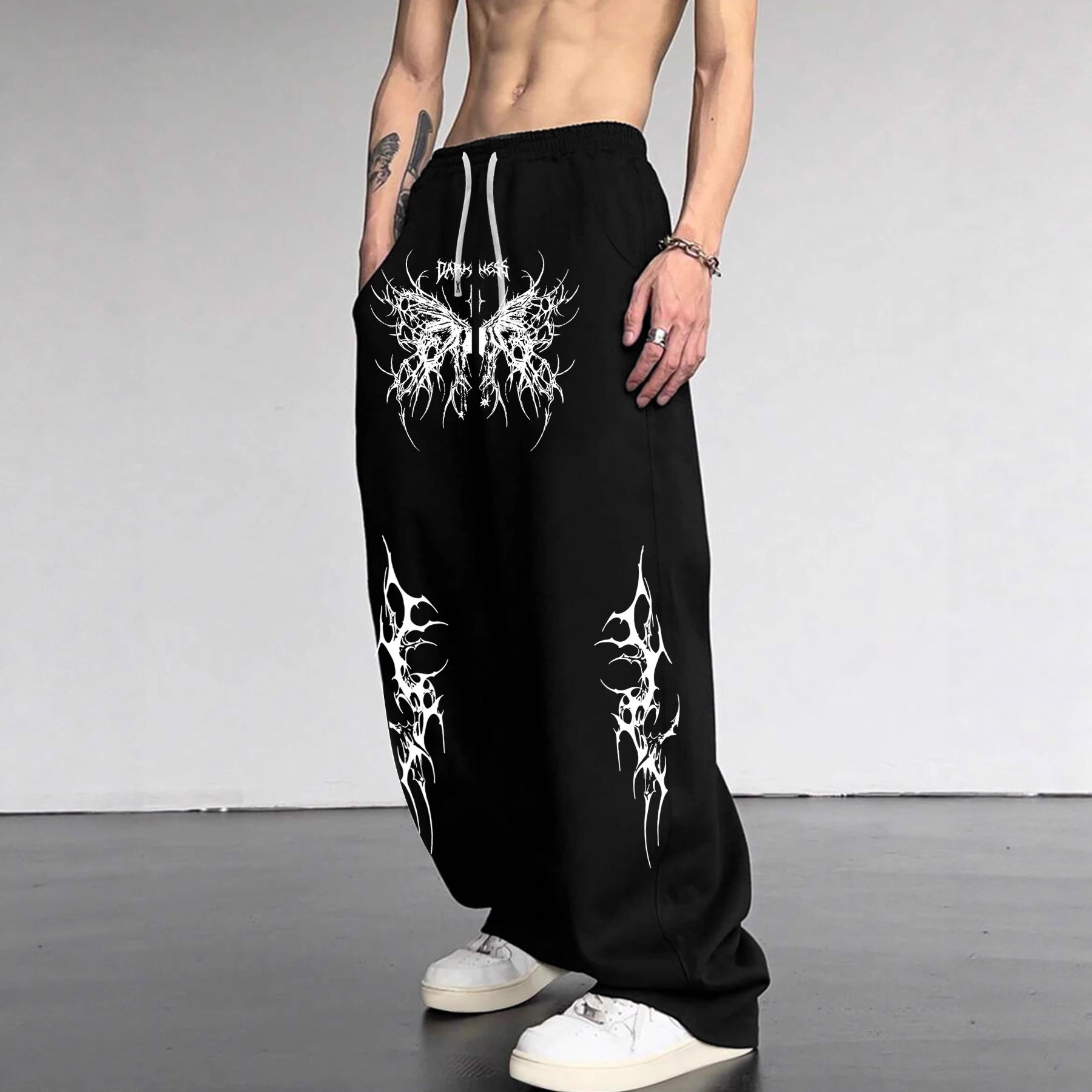 春秋新款 Y2K暗黑哥特印花宽松显瘦男女系带运动裤阔脚卫裤