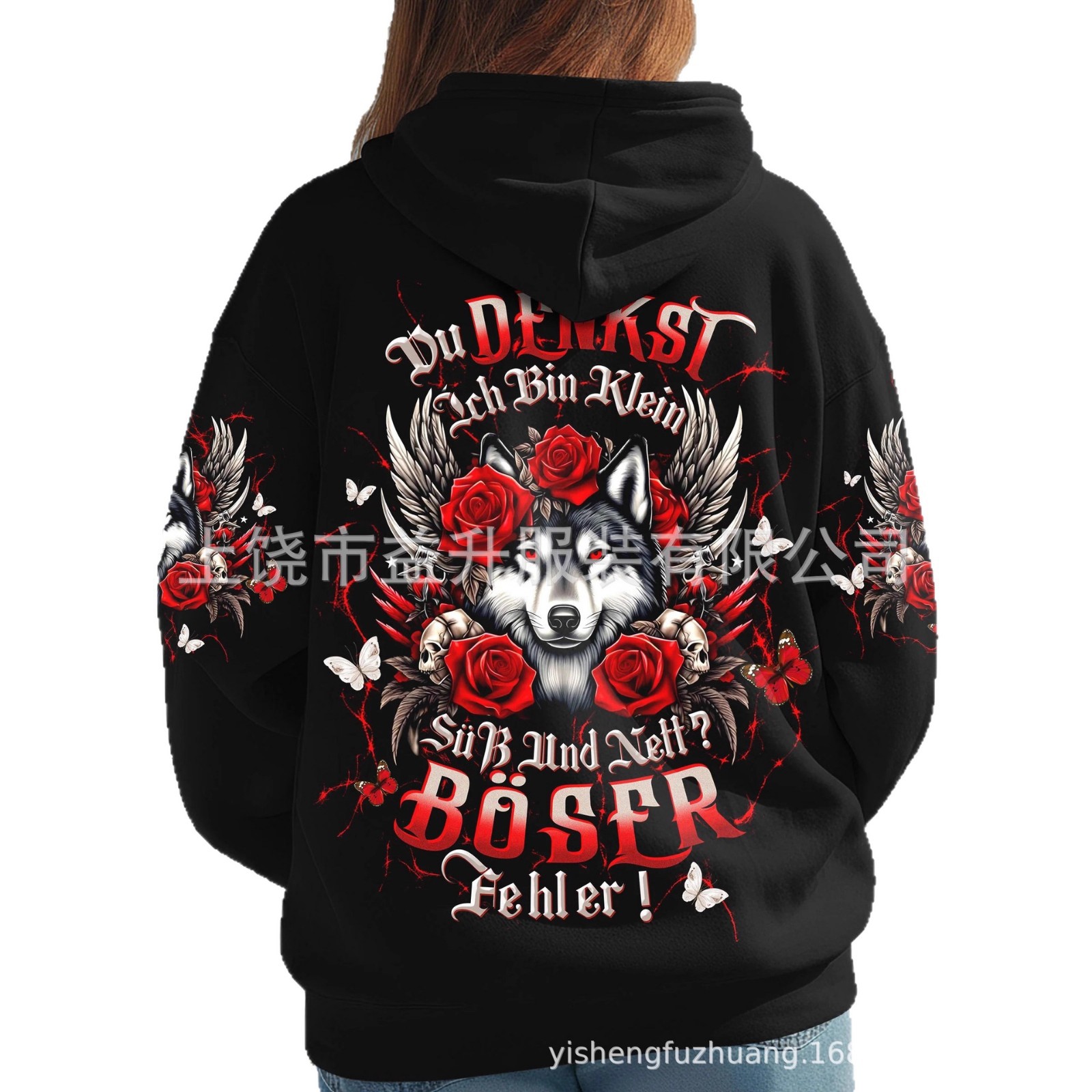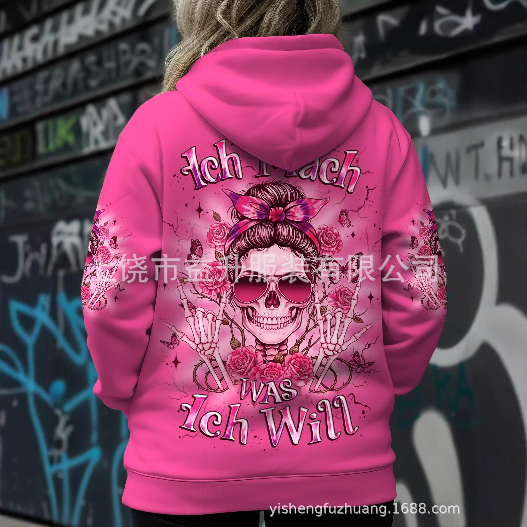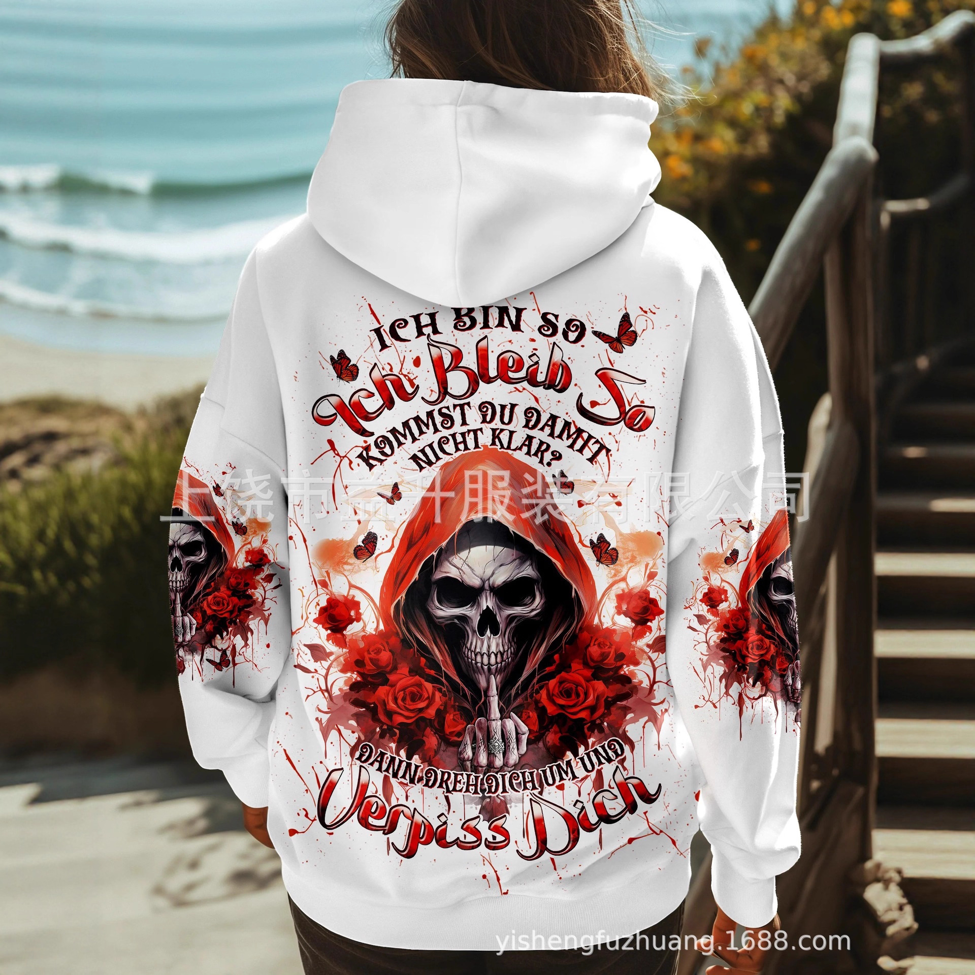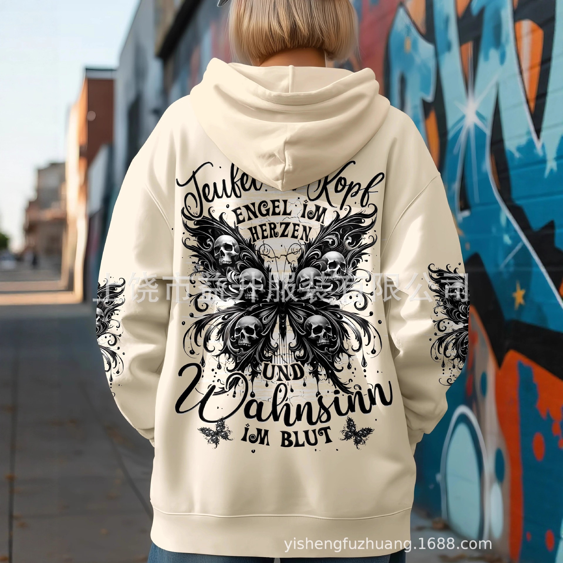 2025跨境欧美休闲爆款秋冬百搭运动衫印花连帽衫长袖连帽时尚卫衣