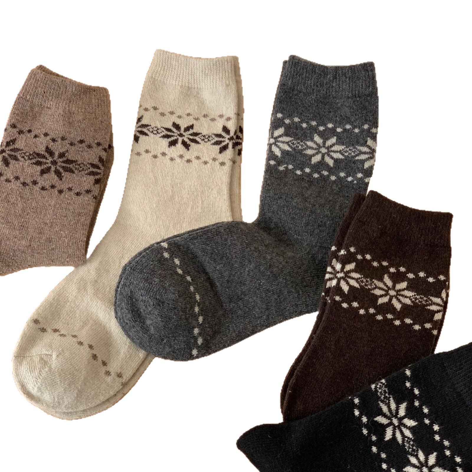 袜子女复古百搭秋冬加厚保暖羊毛袜子费尔岛复古雪花堆堆中筒袜潮