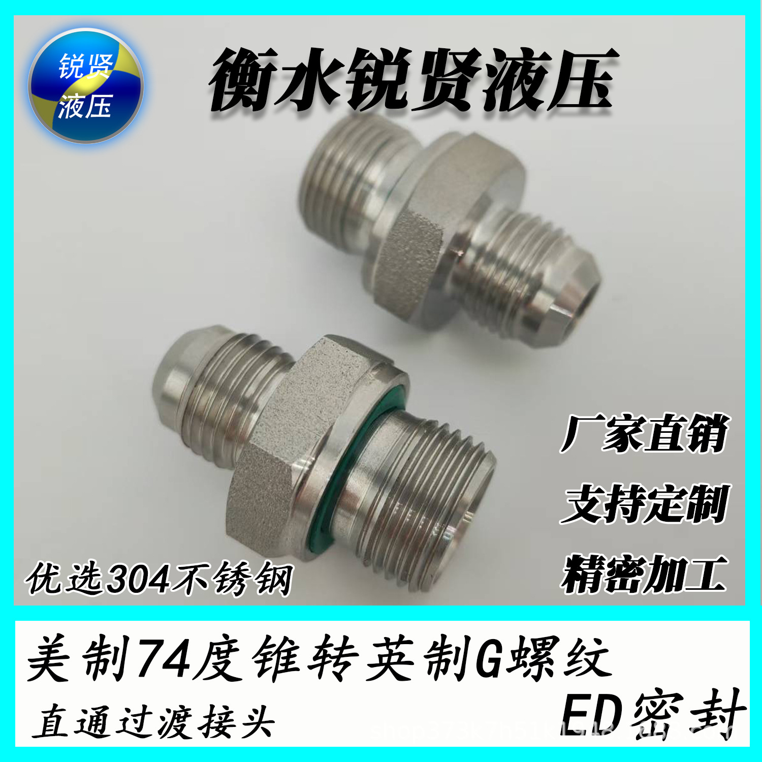 304不锈钢1JB过渡接头美制JIC外螺纹74°外锥转英制外螺纹ED密封