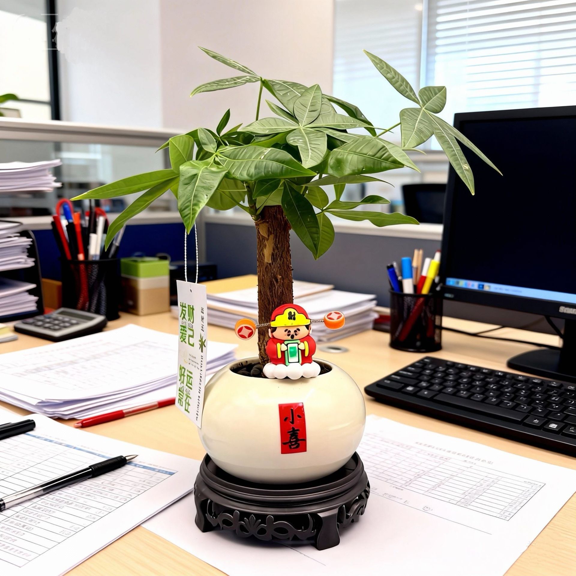 小喜室内氛围感新年盆栽好养四季常青绿植桌面招财摆件好运发财树