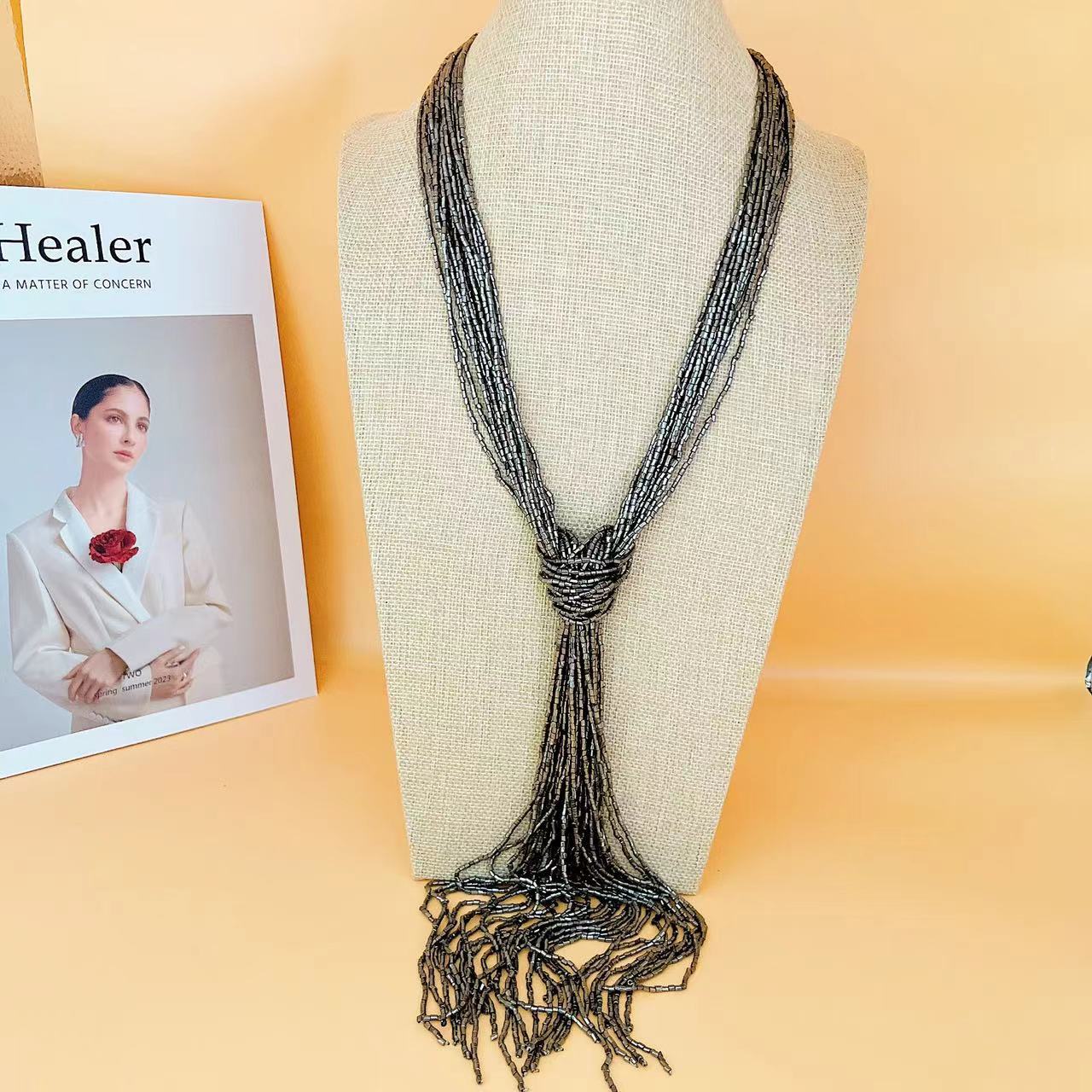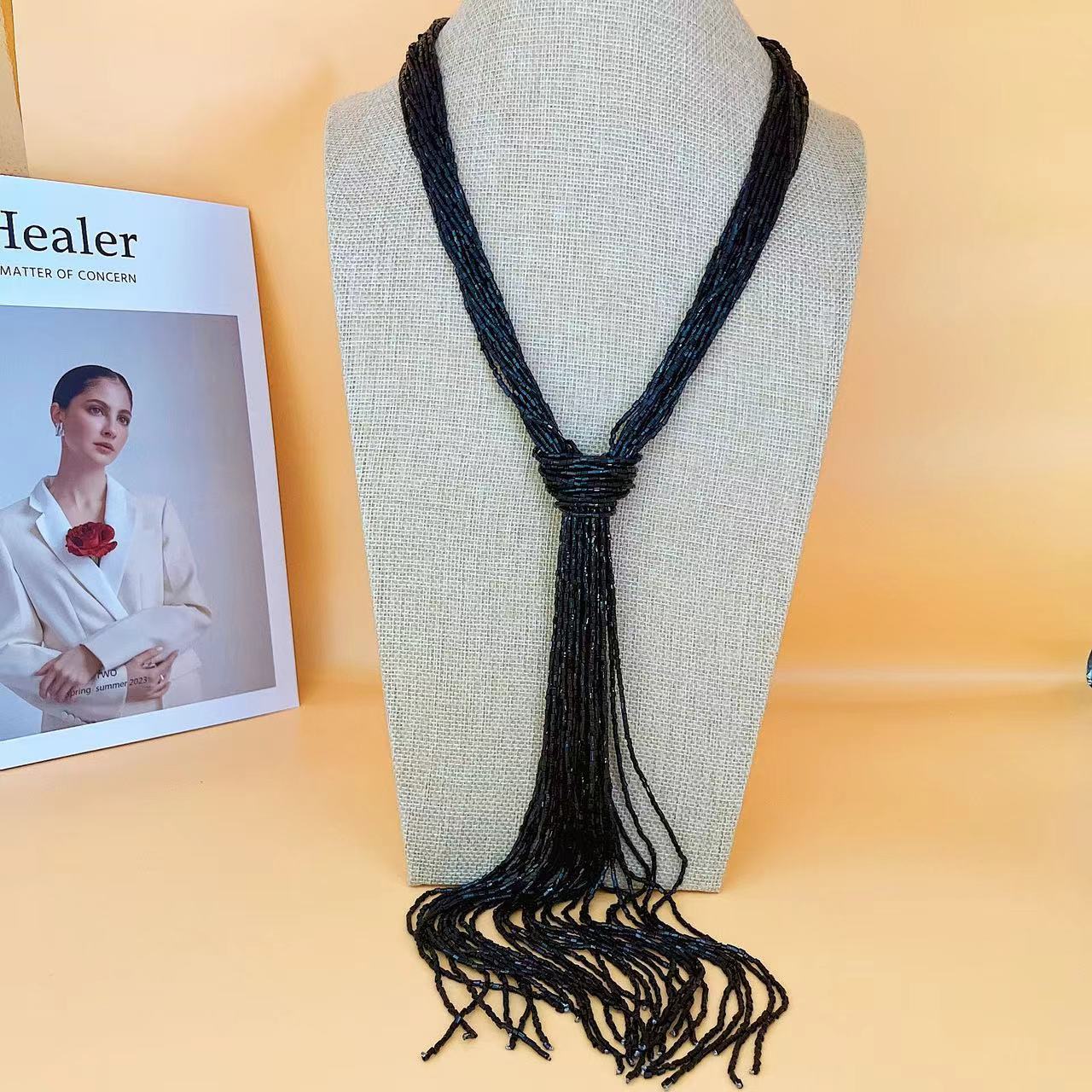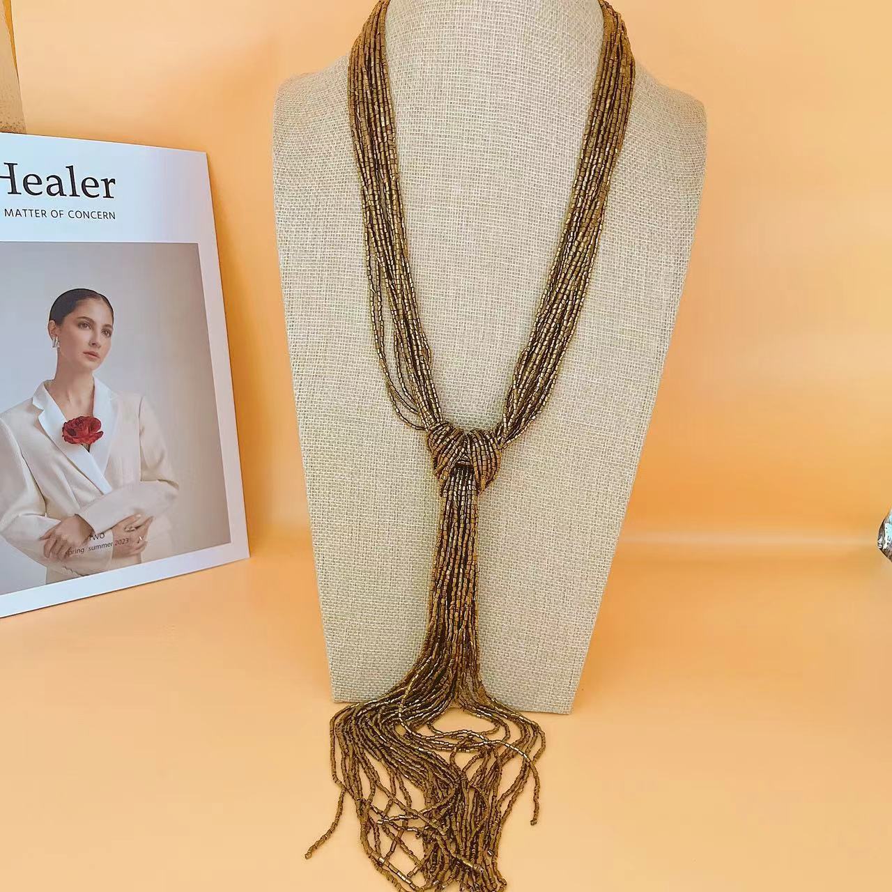 跨境爆款米珠手工项链 民族风 穿珠米珠波西米亚毛衣链 全手工