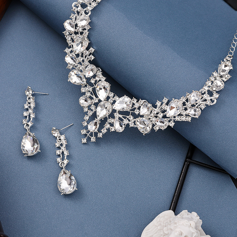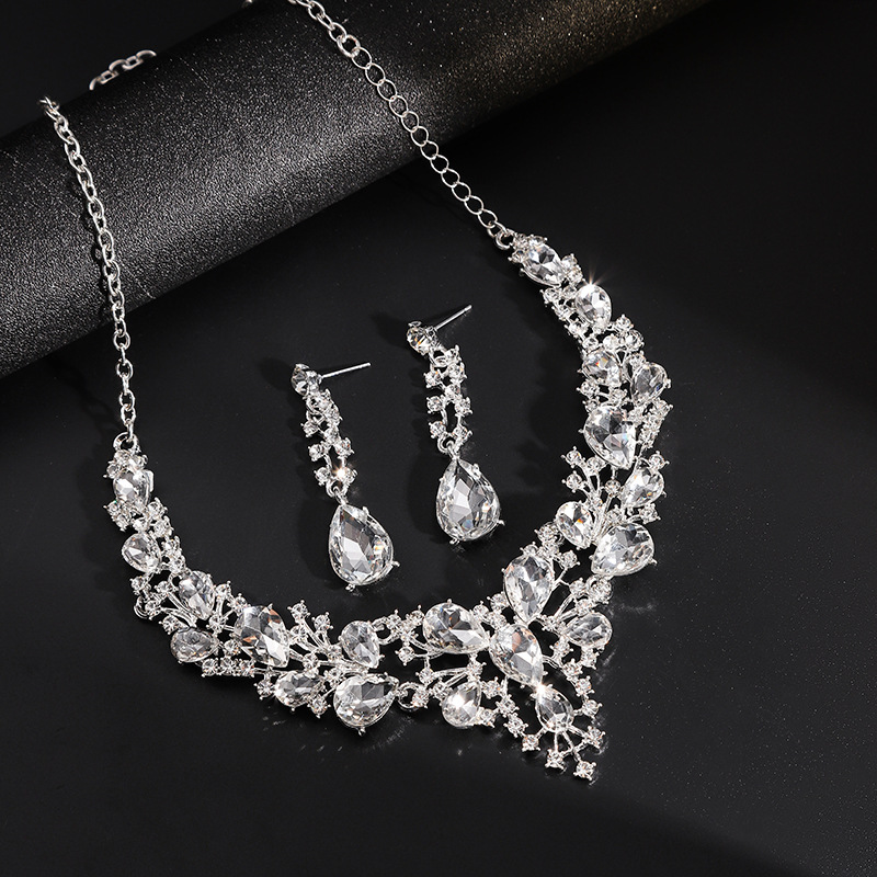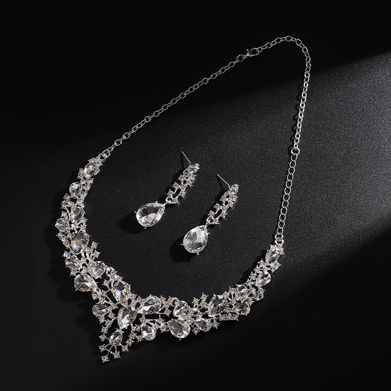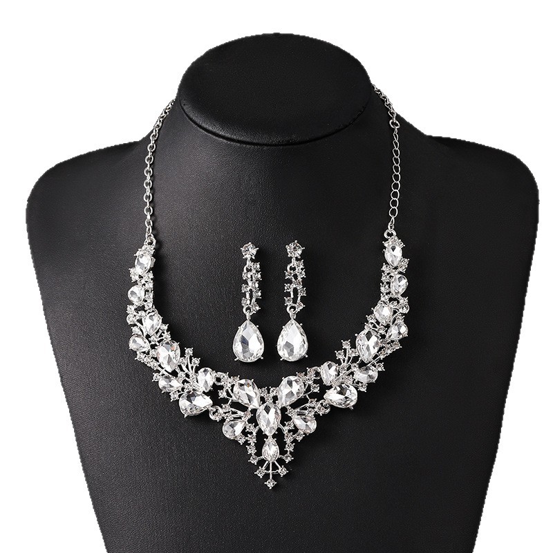 跨境热卖水滴女时尚气质合金水滴形新娘礼服配饰项链耳环套装