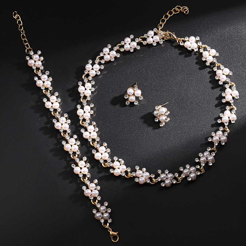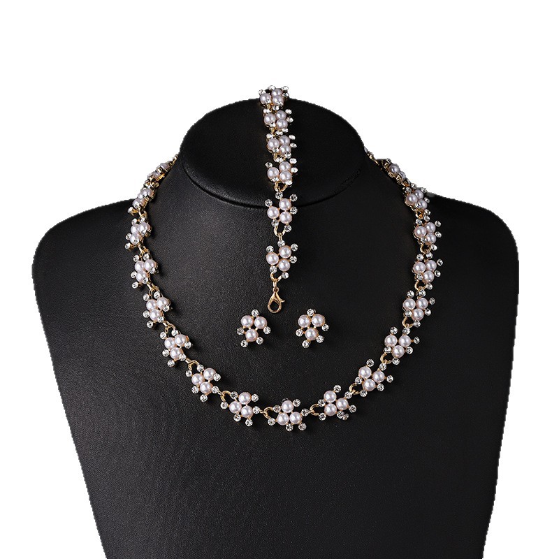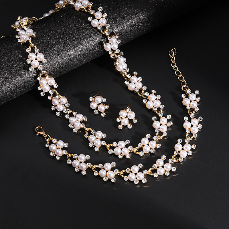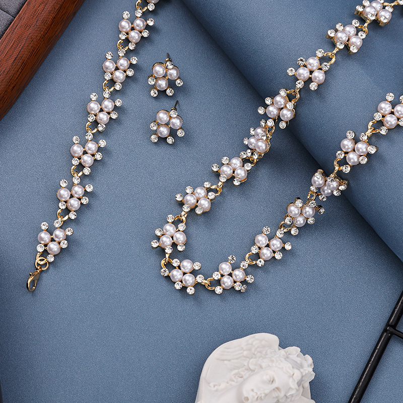 跨境热卖项链耳环套装女时尚气质合金水滴形新娘礼服配饰