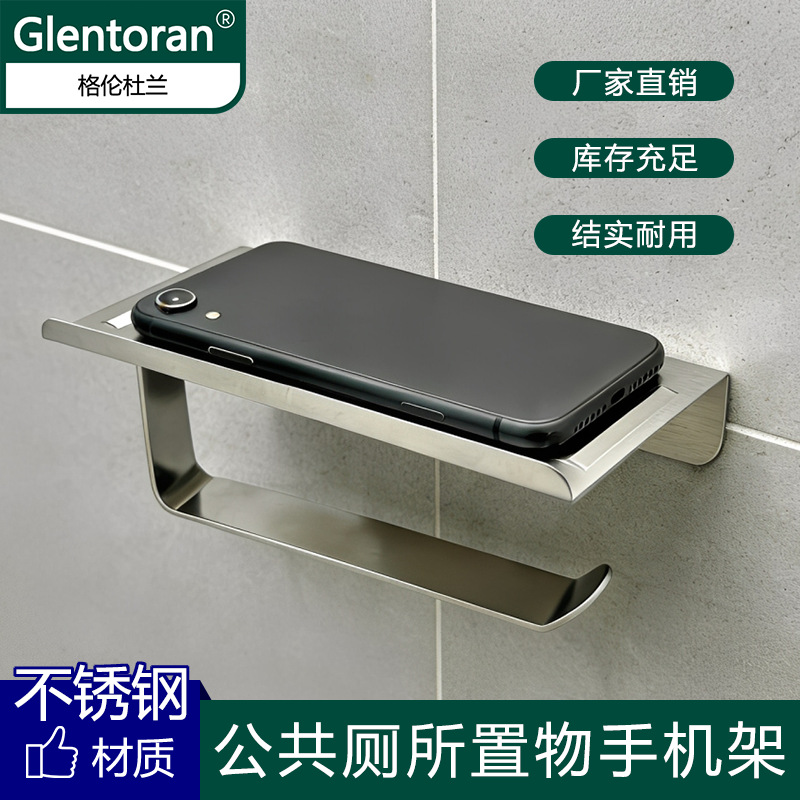 公共卫生间纸巾架手机置物架壁挂不锈钢托盘公用厕所手机架带挂钩