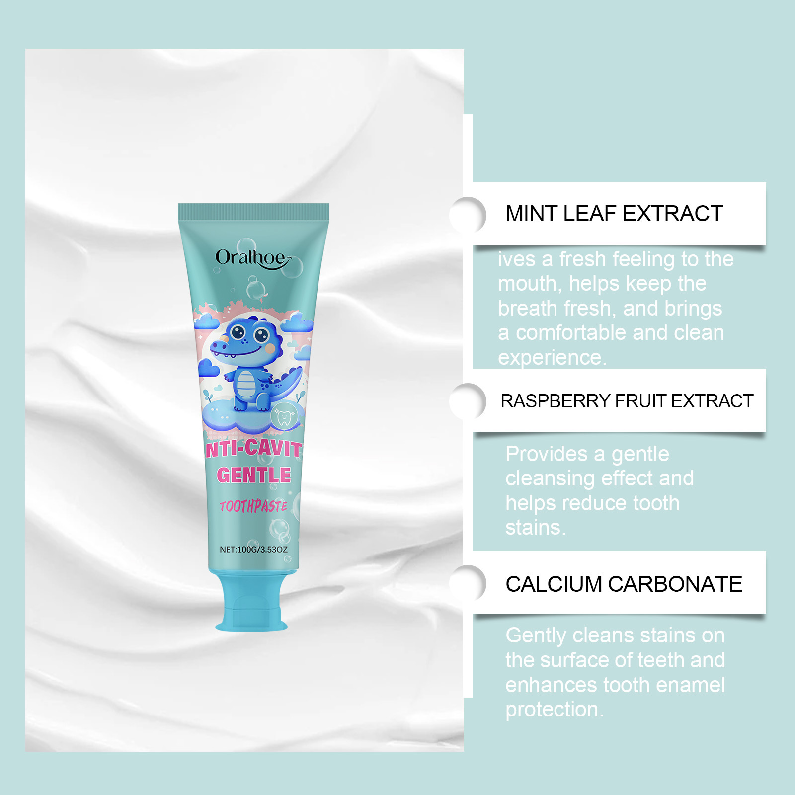 ORALHOE 儿童牙膏 洁白牙齿温和清洁口腔护理
