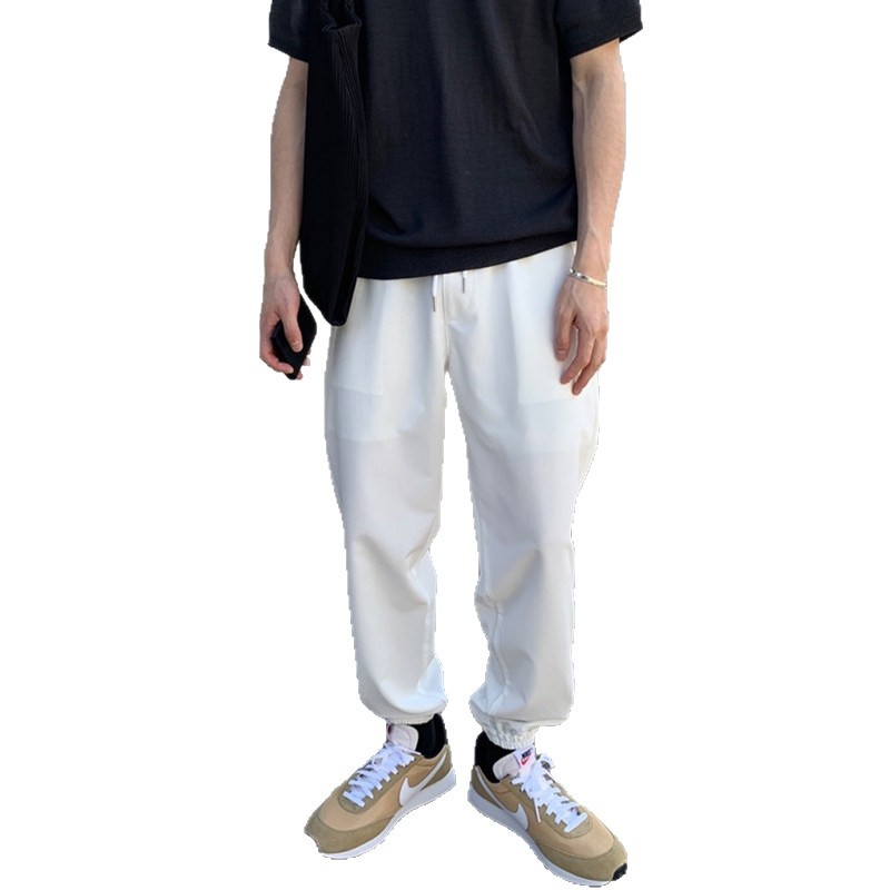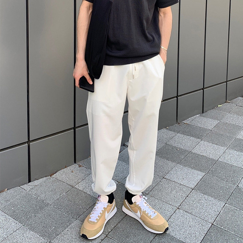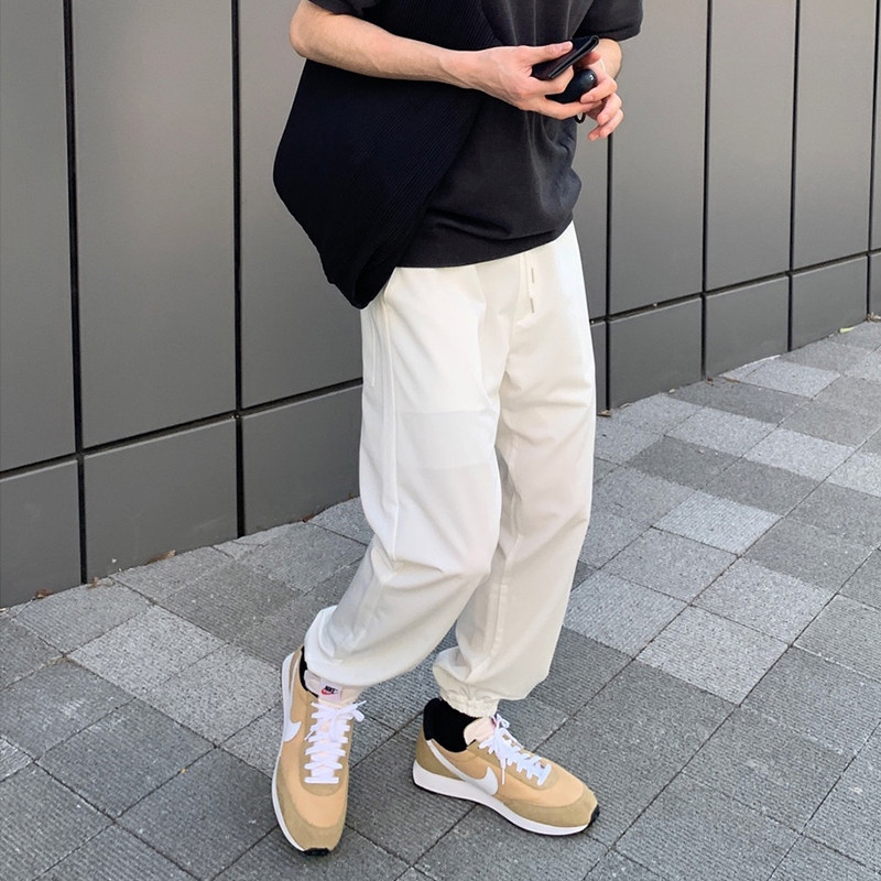 白色运动厚棉裤男士韩版潮流直筒宽松百搭九分束口裤子潮牌休闲裤