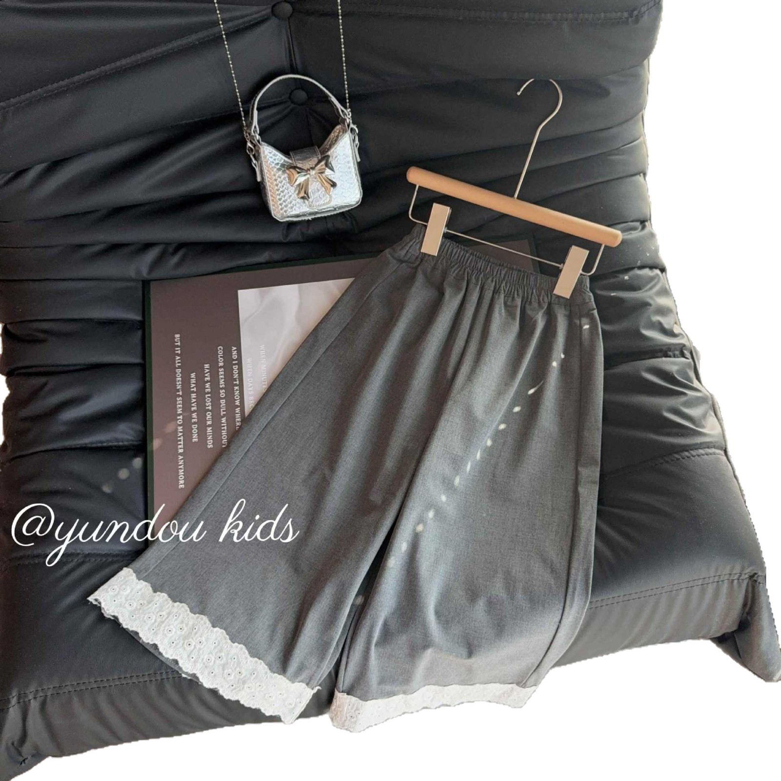 2026春秋新款儿童韩系松紧腰休闲直筒裤女童亲子舒适纯色花边长裤