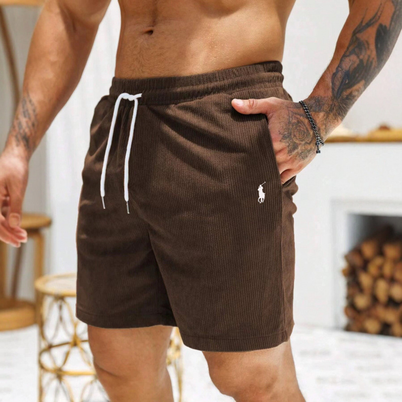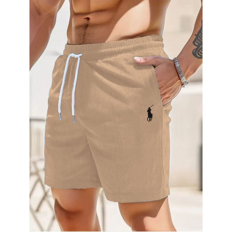 欧美男士夏季灯芯绒抽绳休闲短裤LR刺绣马运动五分裤宽松复古潮牌