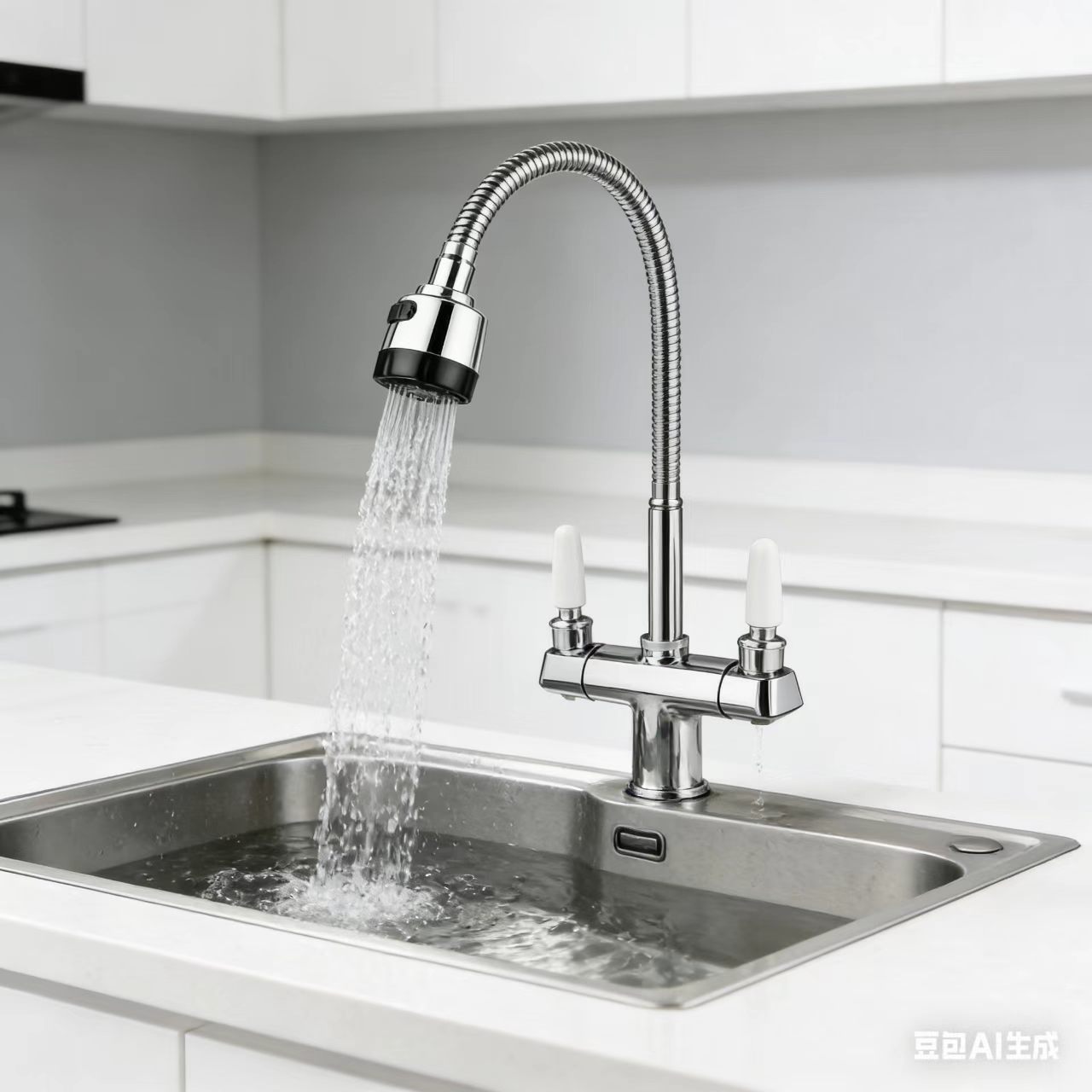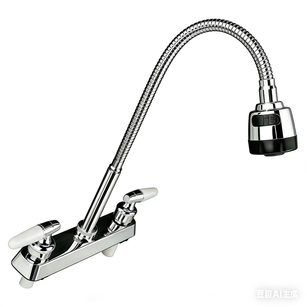 8“双把万向厨房龙头双柄鹅颈水槽混水阀冷热水龙头防臭地漏芯