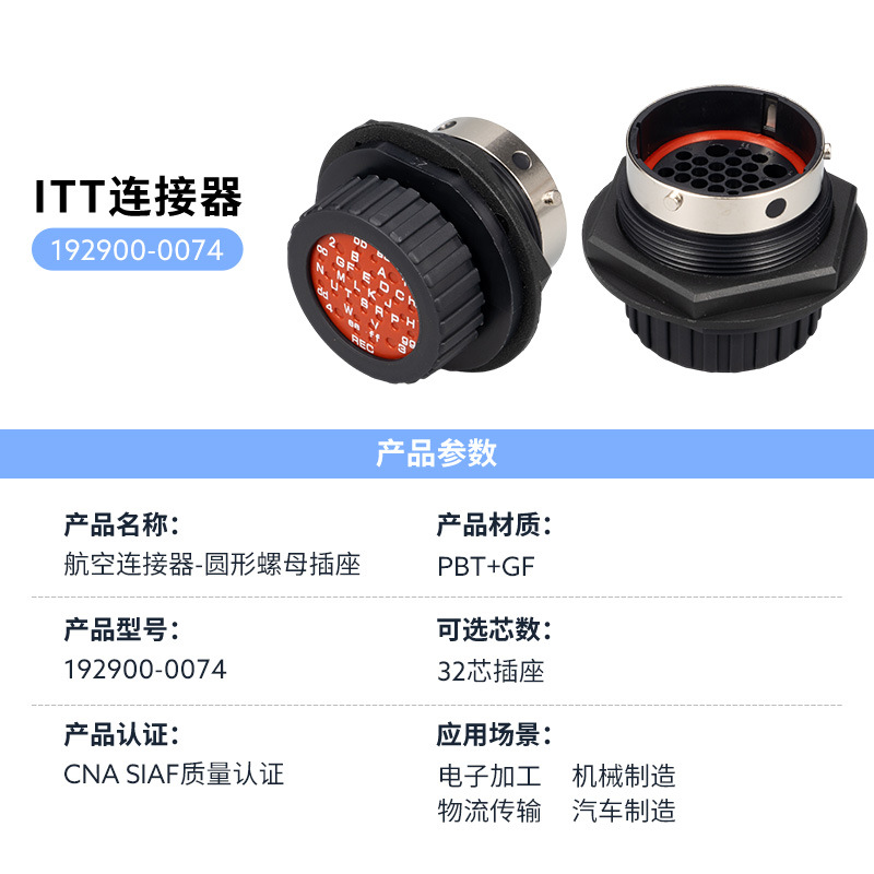 防水连接器 itt 192900-0074 泵车32芯圆形螺母插座工厂现货