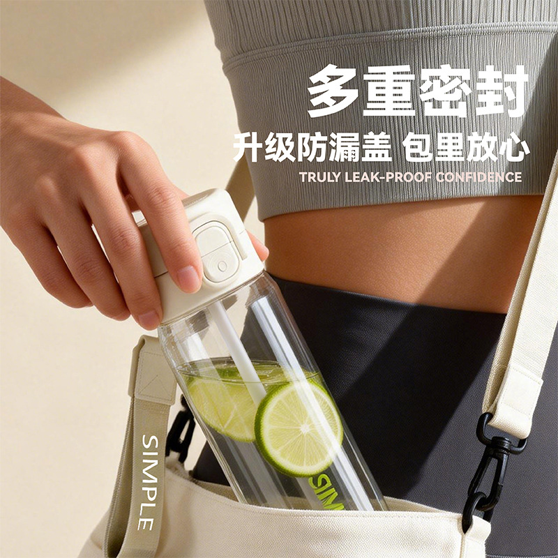 新款简约运动塑料杯夏季大容量男女耐高温双饮吸管杯学生上学杯子